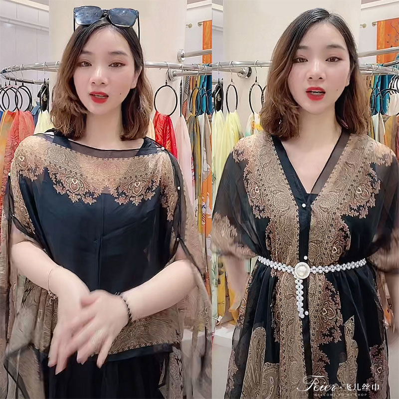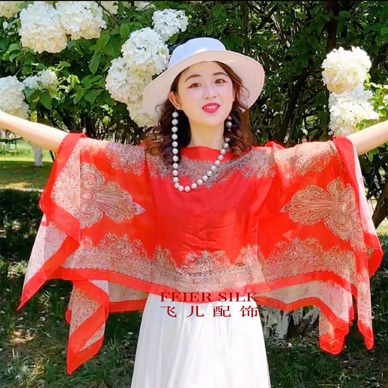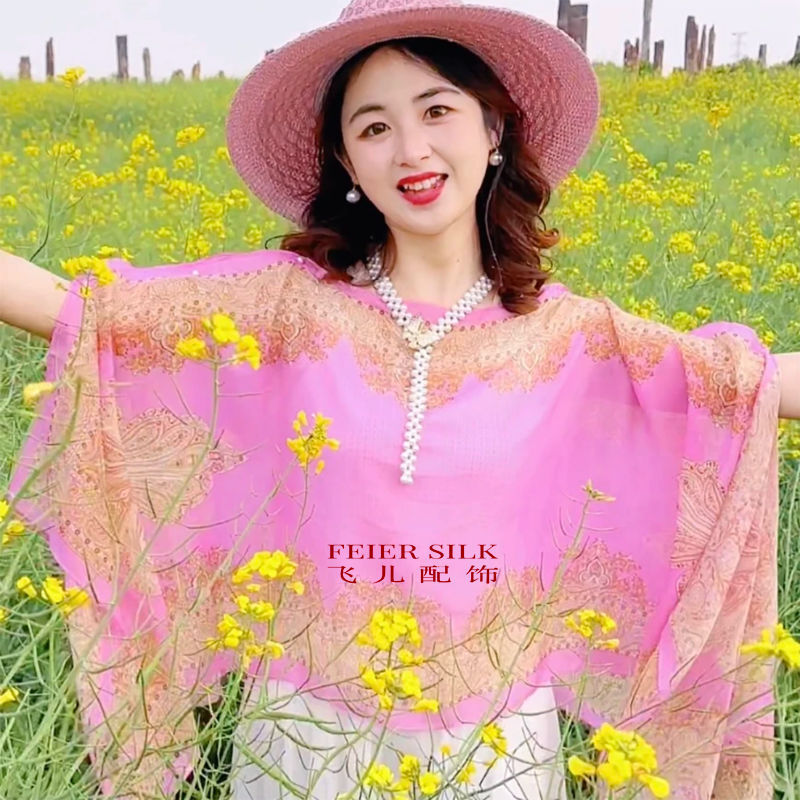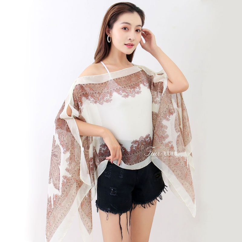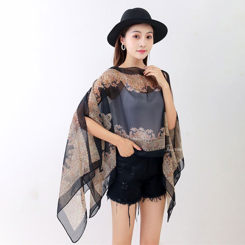 ] 패션 외국 스타일 캐슈 꽃 진주 자외선 차단제 목도리 100*150cm 스카프 쉬폰 차양스토어 가기