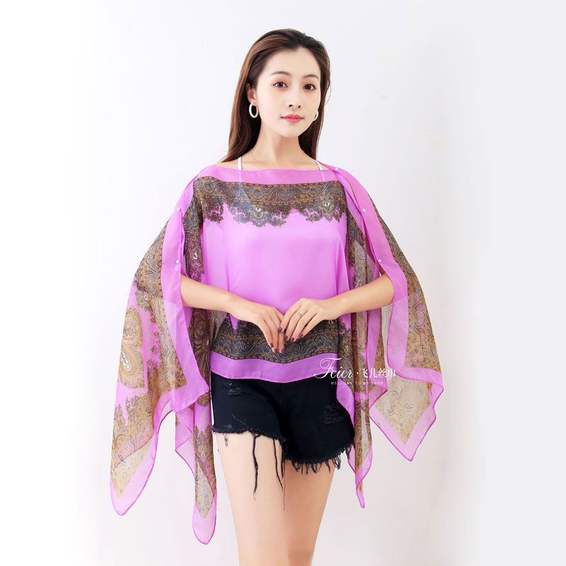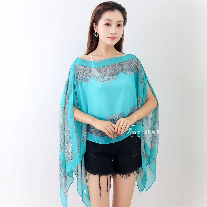 ] 패션 외국 스타일 캐슈 꽃 진주 자외선 차단제 목도리 100*150cm 스카프 쉬폰 차양