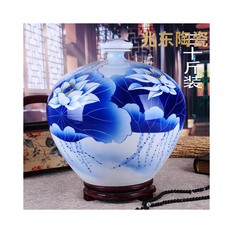 Jingdezhen 세라믹 봉인 30kg 와인 항아리 손으로 그린 파란색과 흰색 도자기 Yaochi Qingyun 30kg 와인 병 빈 와인 도구스토어 가기