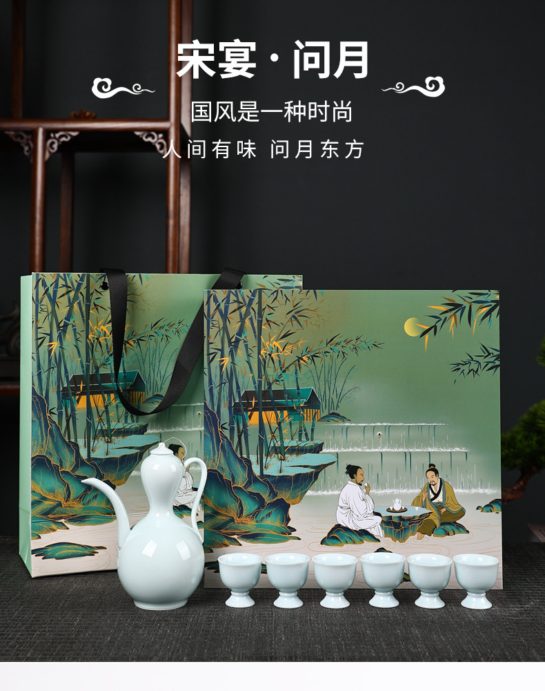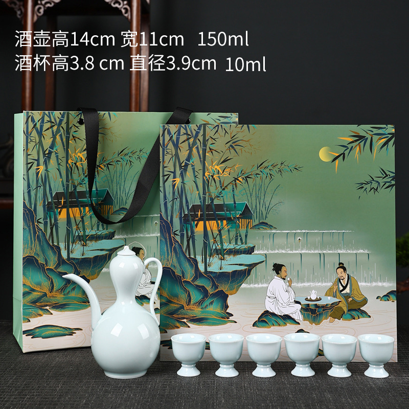 축제 전 행사 Jingdezhen 수제 세라믹 와인 세트 세트 주전자 와인 냄비 드래곤 보트 축제 선물 상자 노래 Yan Wen Yue스토어 가기