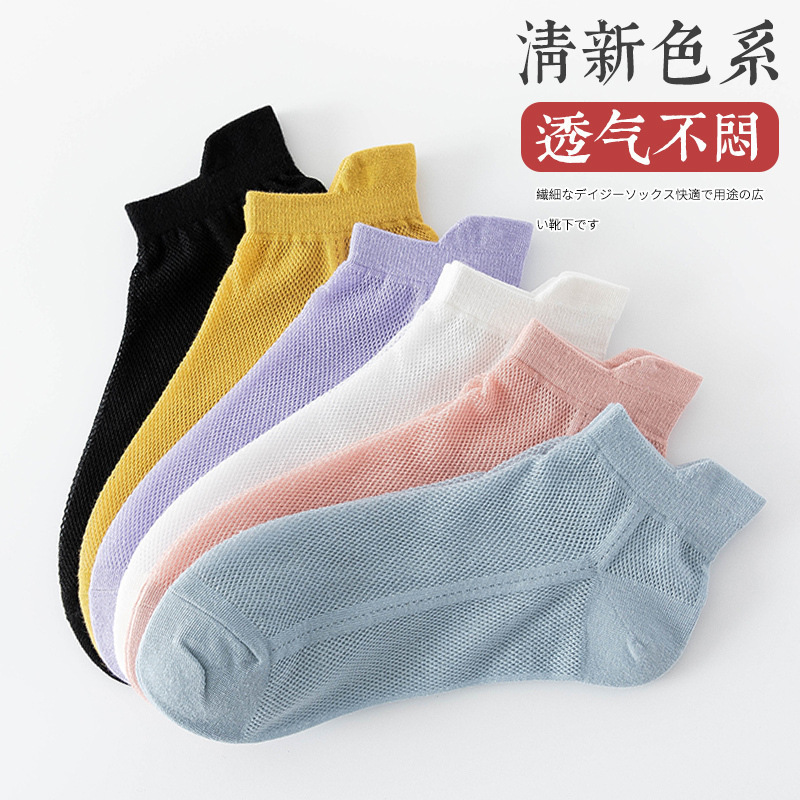 양말 여성용 짧은 양말 여름 얇은 폴리 에스테르 코튼 땀 흡수 통기성 캔디 컬러 여름 메쉬 얕은 입 보트 양말 Zhuji스토어 가기