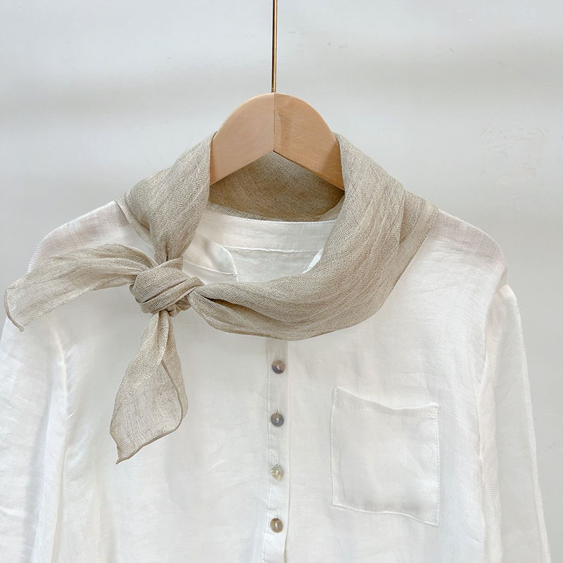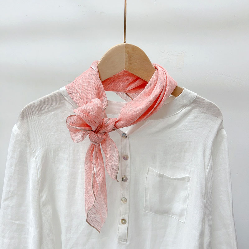 봄과 가을 올 매치 솔리드 컬러 리넨 작은 광장 얇은 통기성 여성의 여름 목 보호 작은 실크 스카프 액세서리 신제품스토어 가기