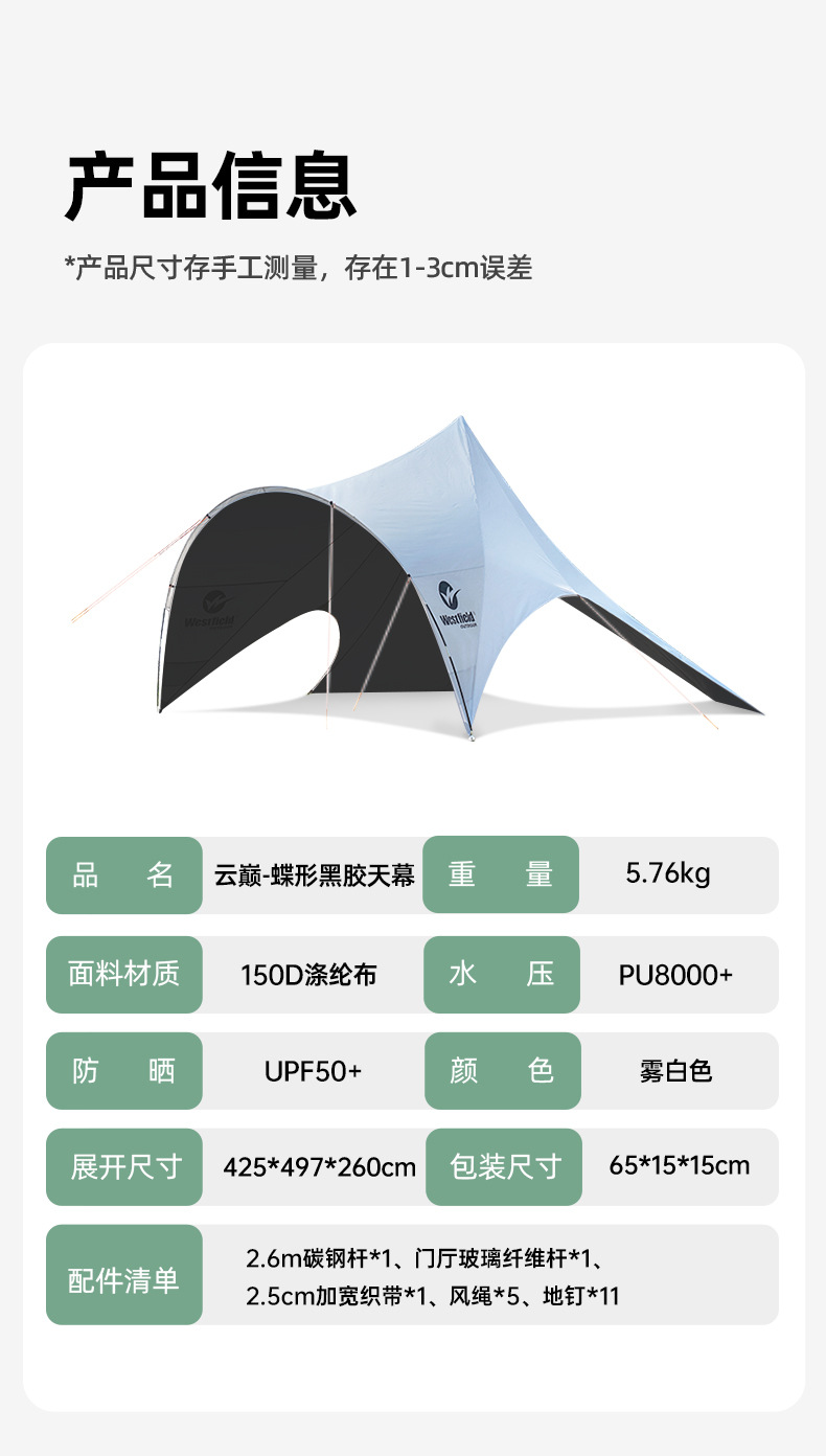 I Feiyun 탑 실버 코팅 돔 텐트 야외 캠핑 돔 나비 모양의 대형 만능 태양 보호 및 양산스토어 가기