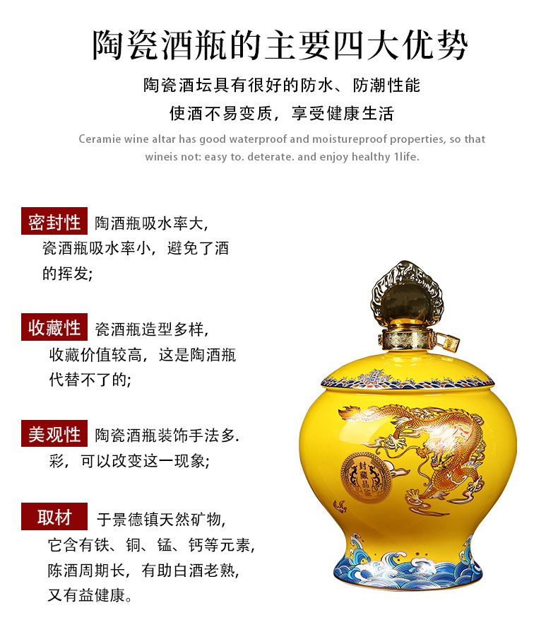 Jingdezhen 세라믹 와인 항아리 10kg 빈 와인 병 와인 항아리 가정용 골동품 셀러 밀봉 와인 저장 탱크 와인 항아리