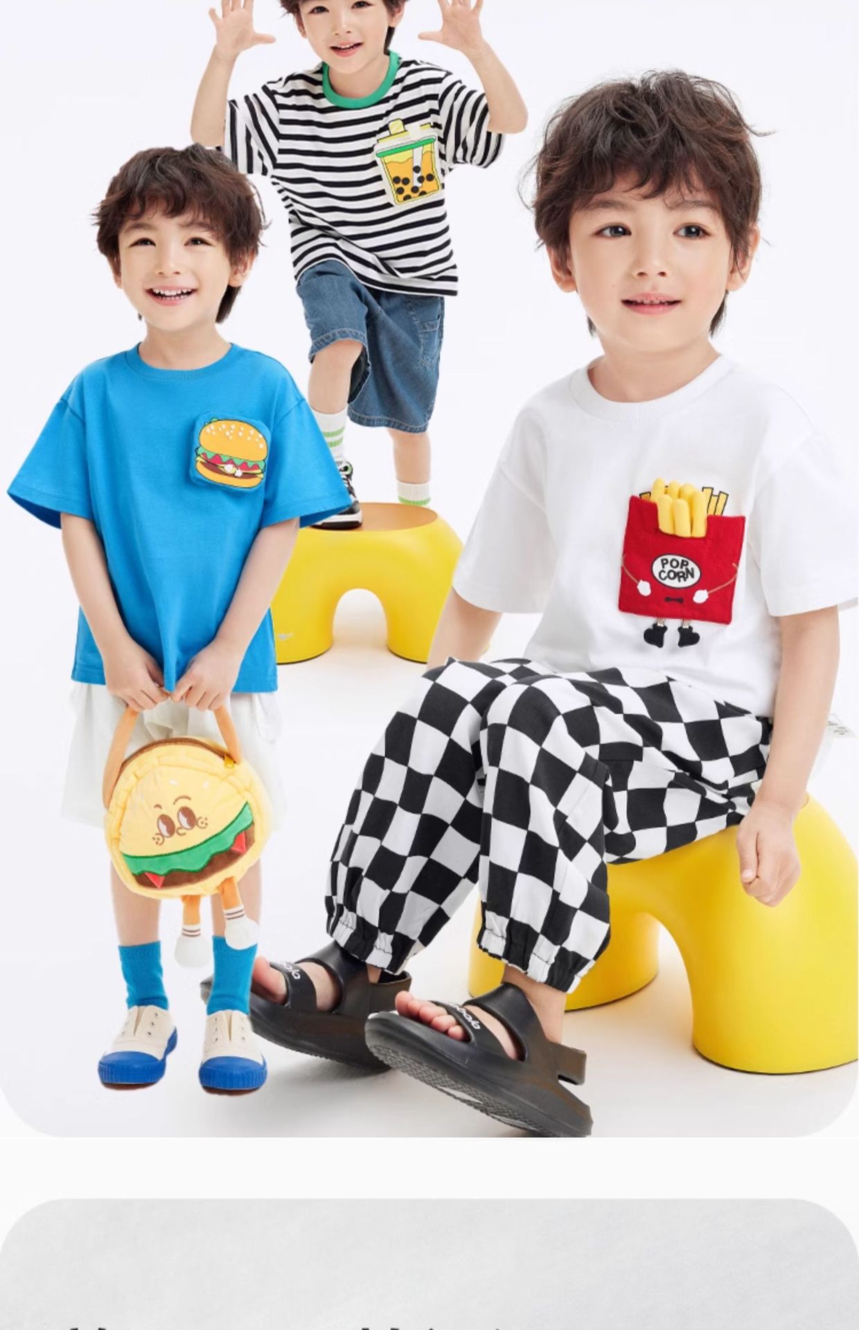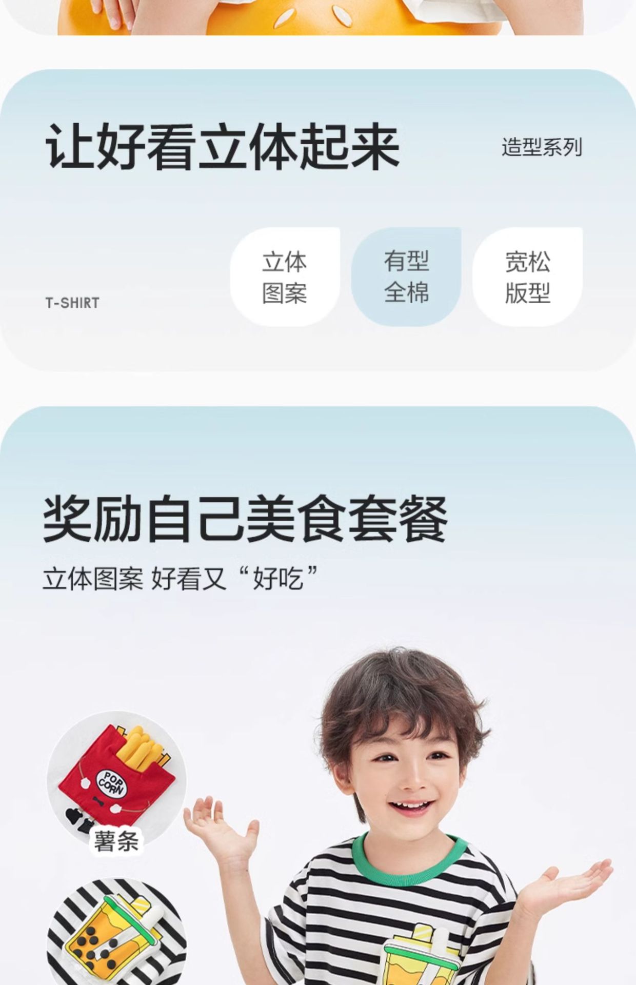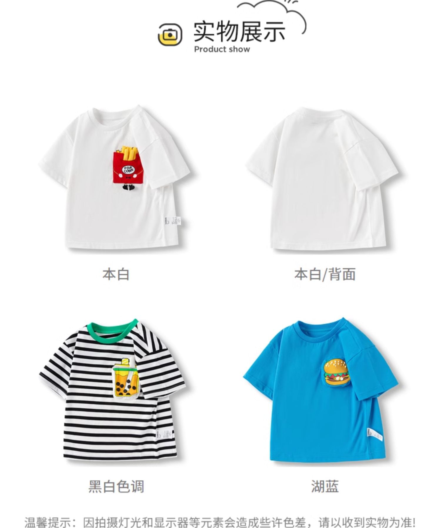 어린이 반소매 티셔츠 소년 소녀 탑 여름 새 아동복 프렌치 프라이 햄버거 아기의 반소매베이스 셔츠 퓨어 코튼스토어 가기