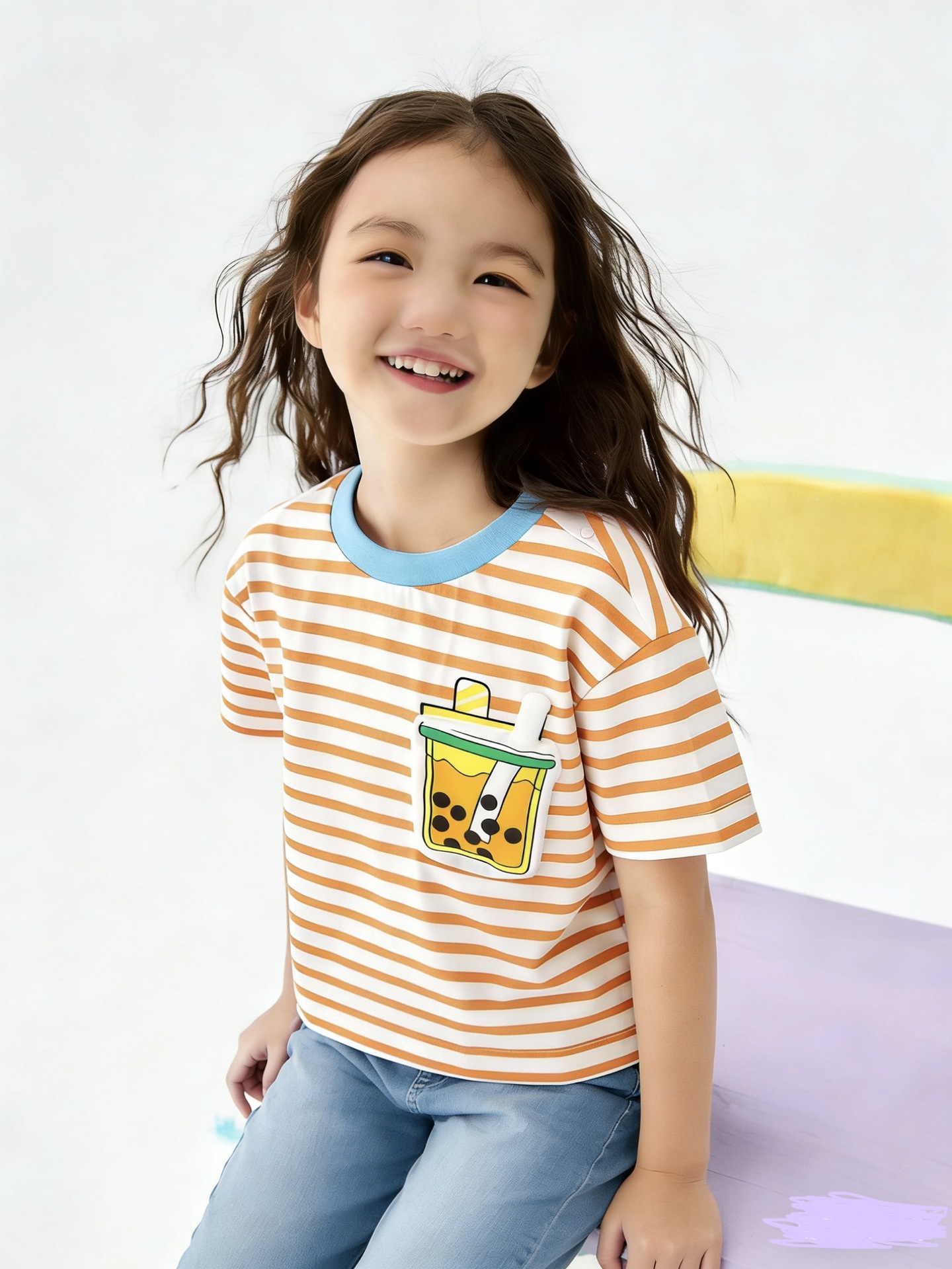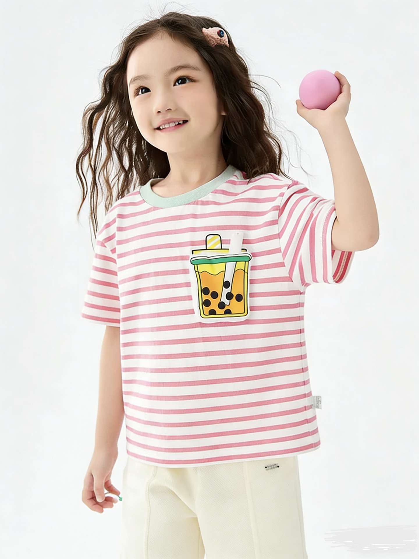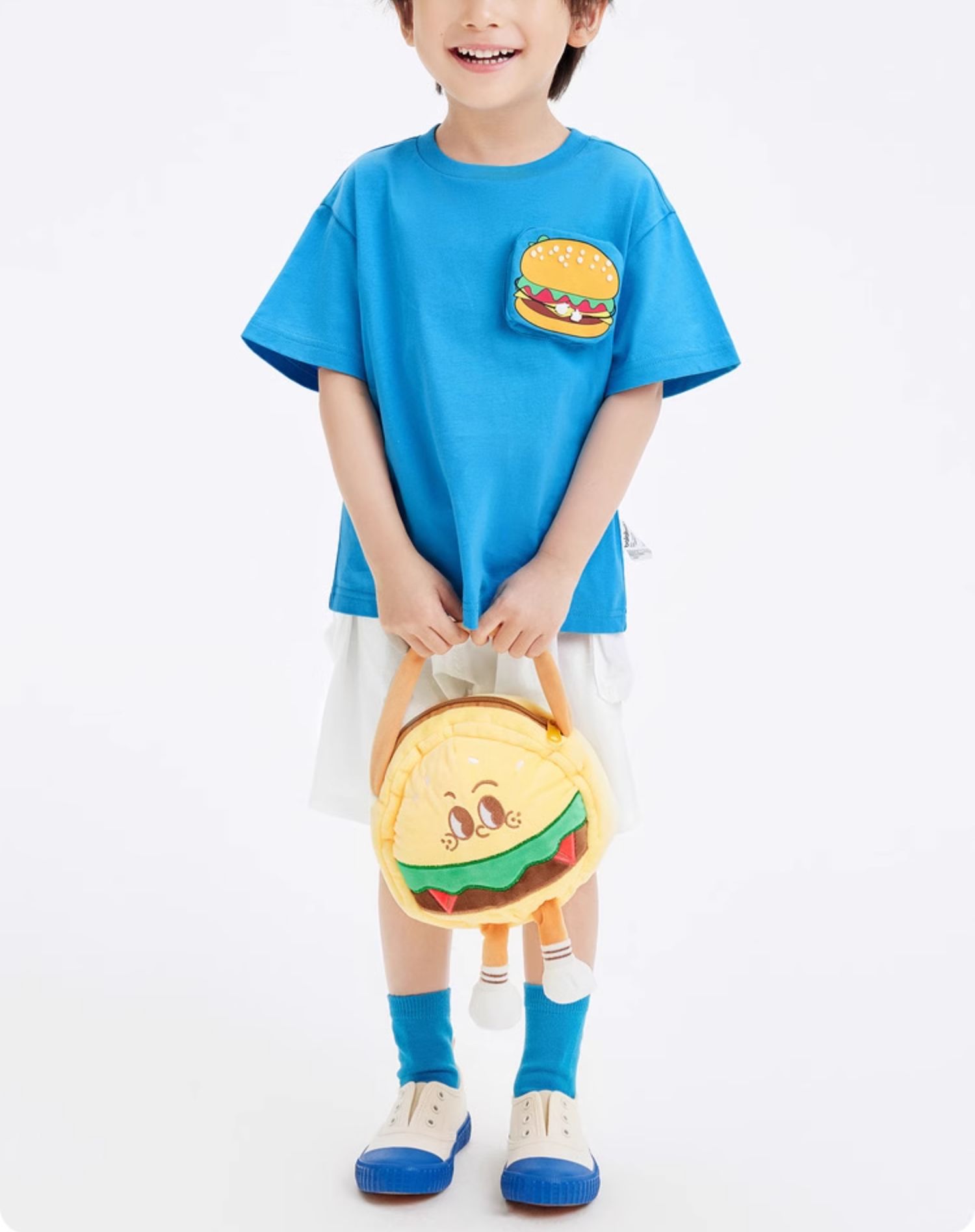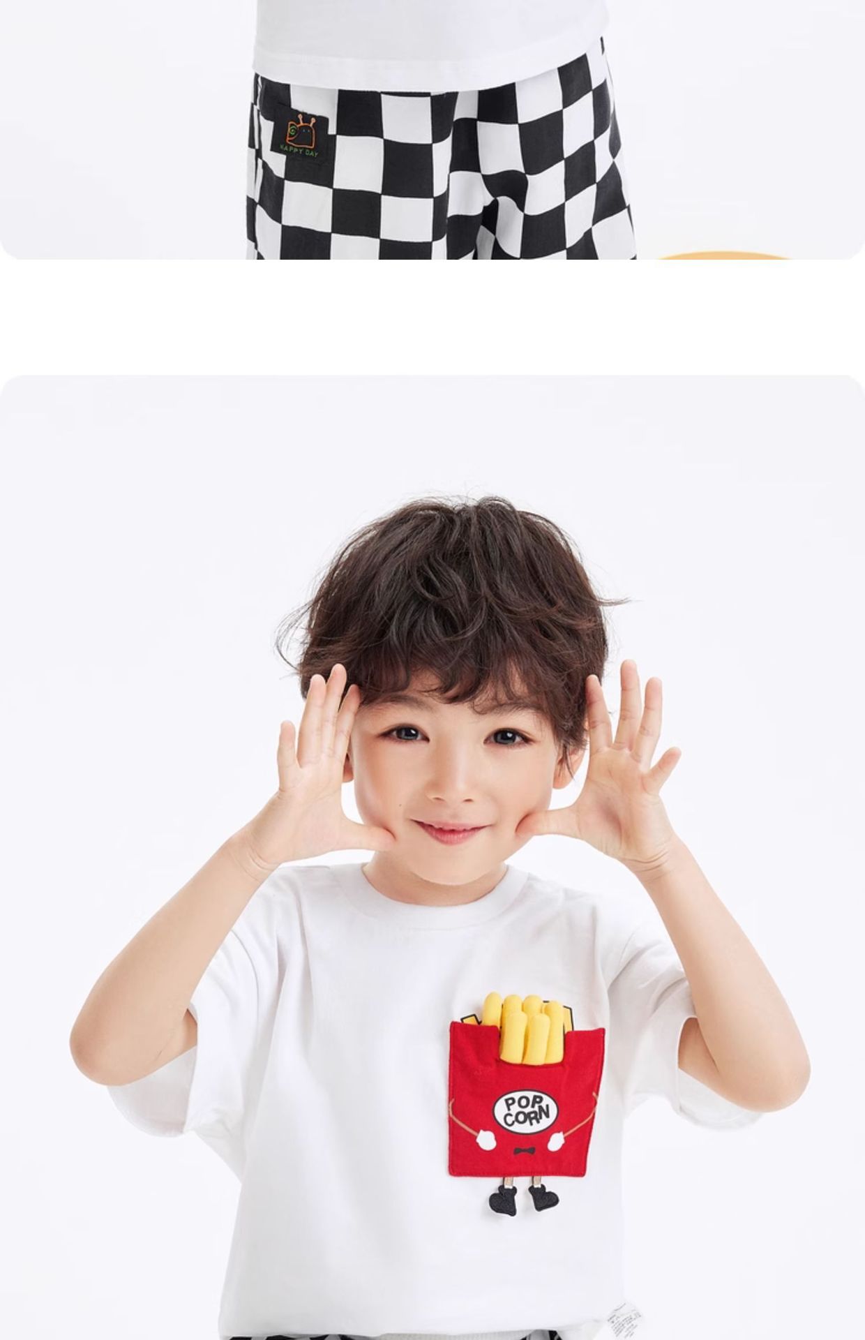 어린이 반소매 티셔츠 소년 소녀 탑 여름 새 아동복 프렌치 프라이 햄버거 아기의 반소매베이스 셔츠 퓨어 코튼스토어 가기