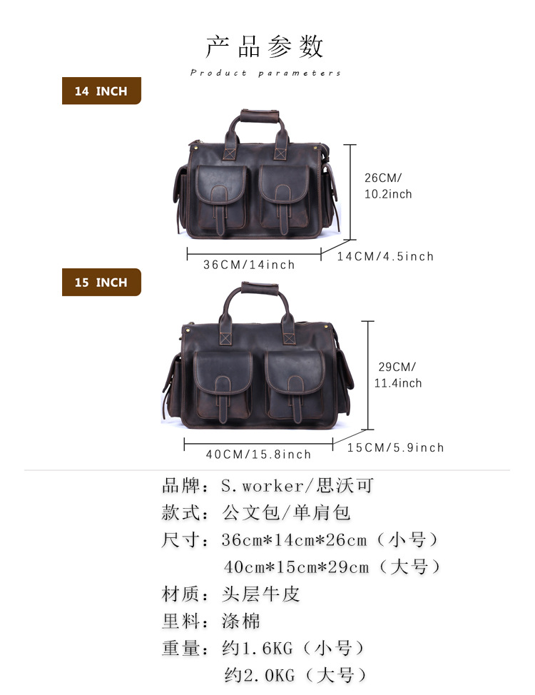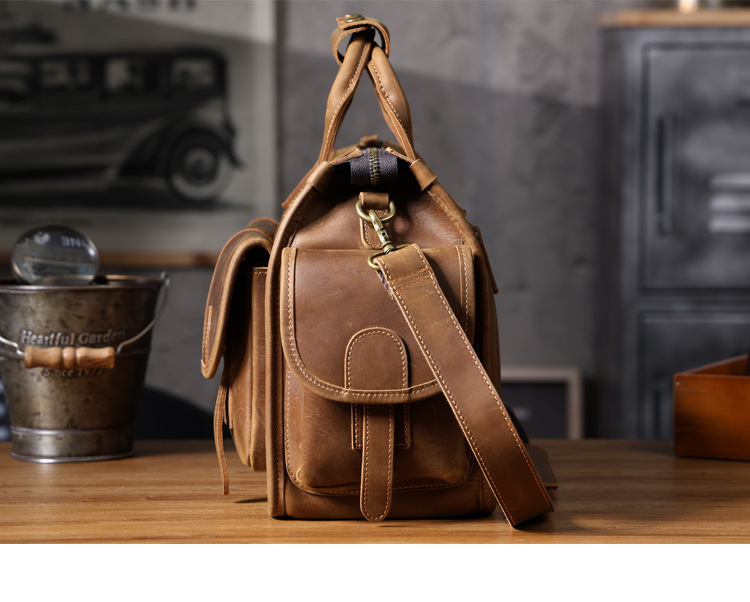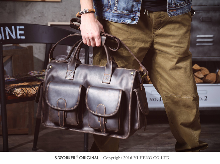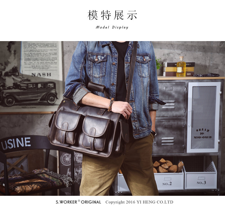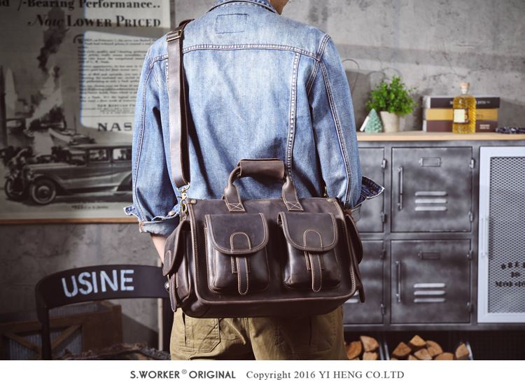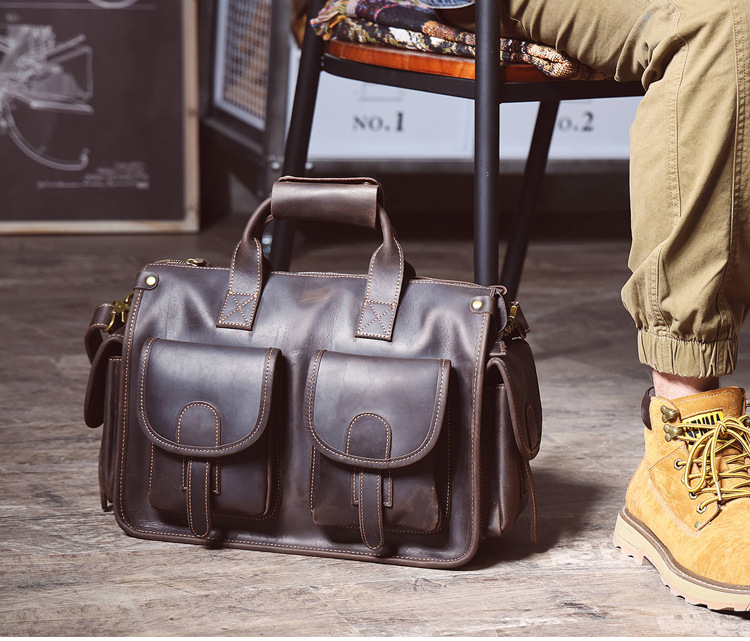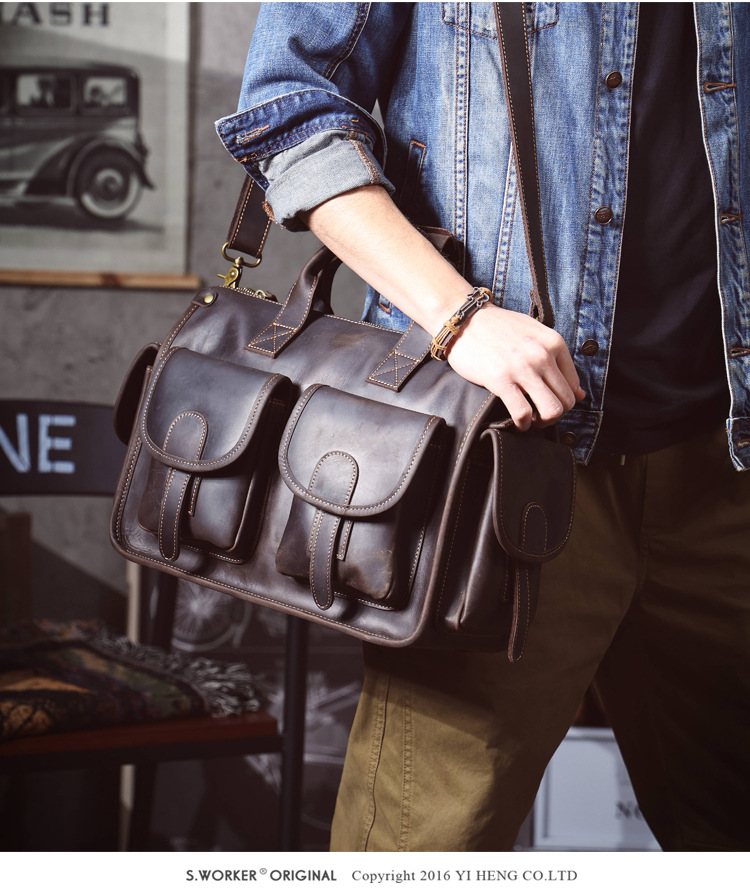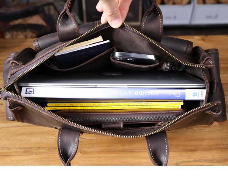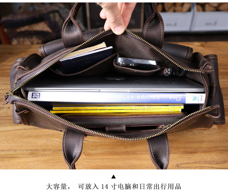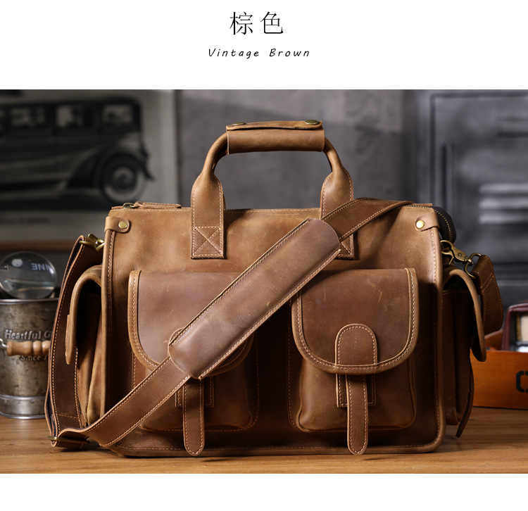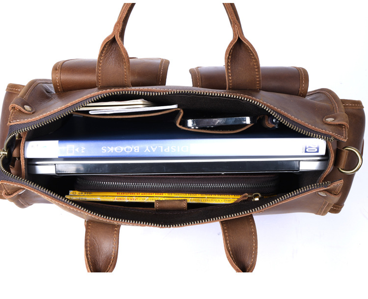간단한 레트로 탑 레이어 Cowhide 핸드백 남자의 미친 말 가죽 서류 가방 정품 가죽 컴퓨터 가방 남성 가방 Messerman 가방스토어 가기