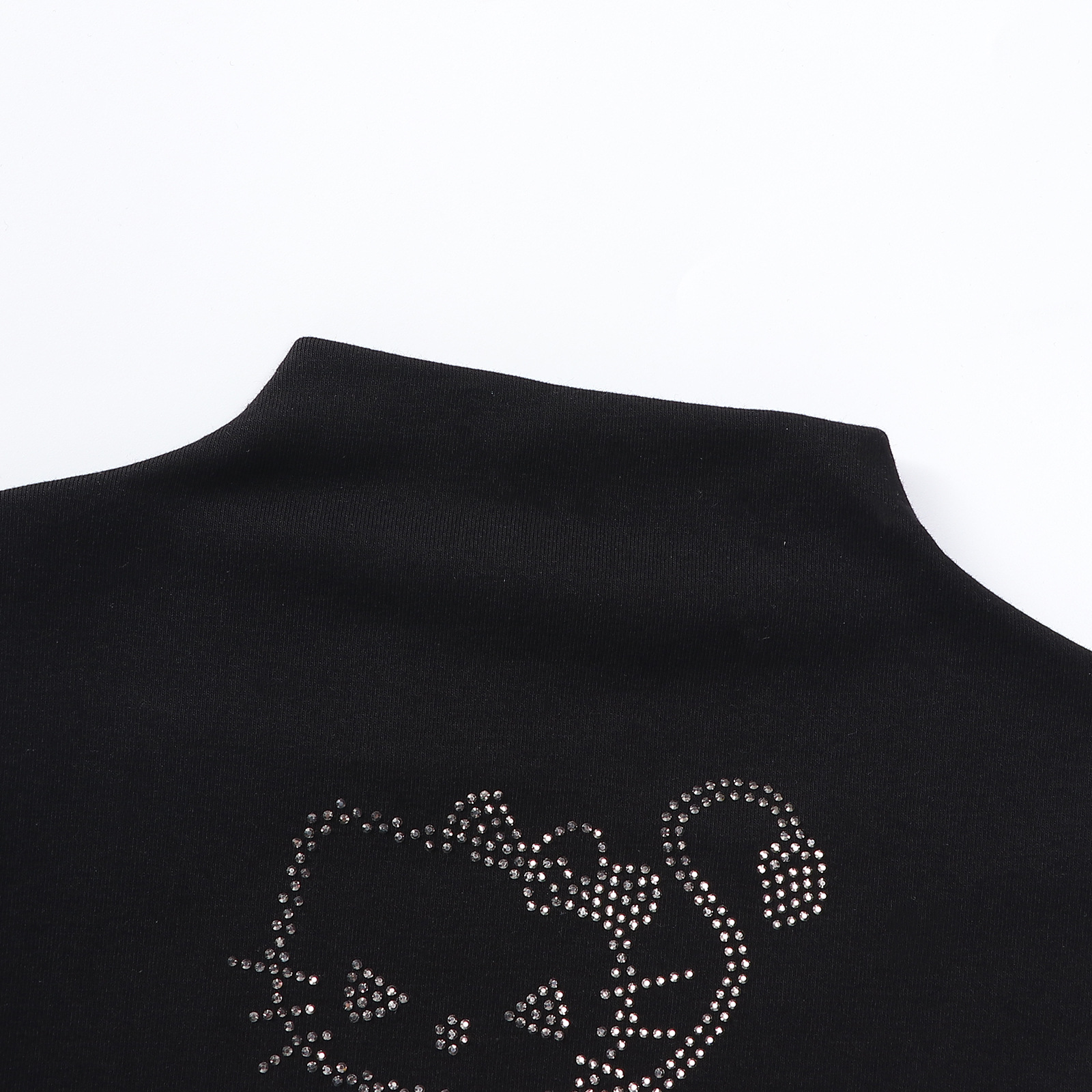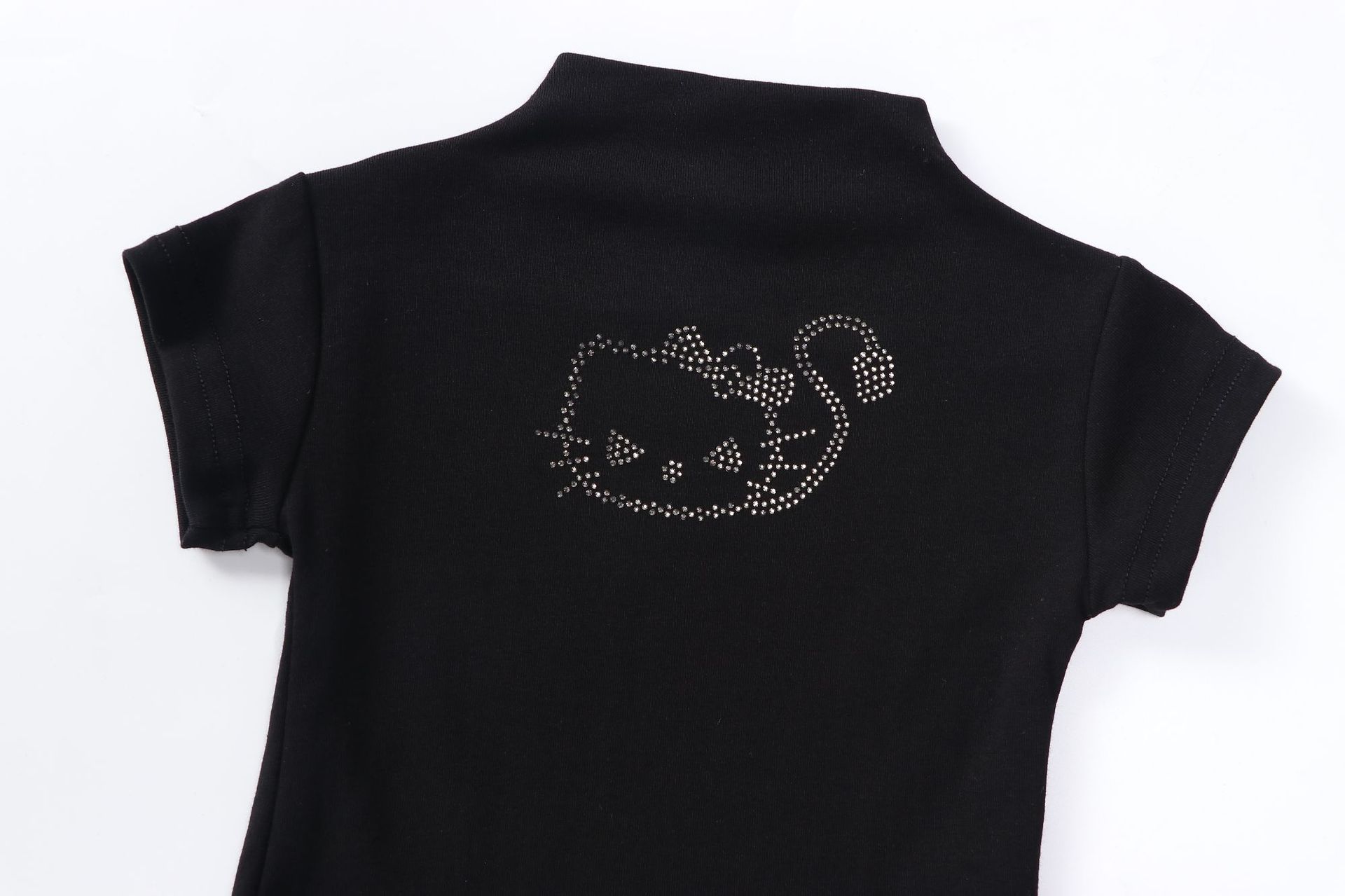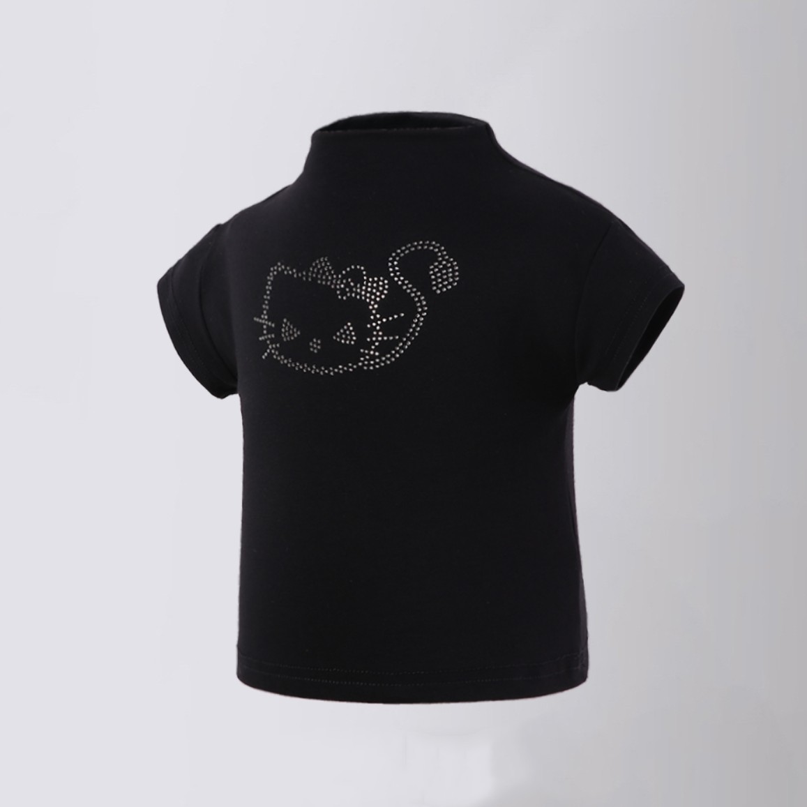 【재고정리】여아용 하이넥 여름 신상 허리라인 슬림핏 반팔 블랙 고양이 티셔츠 탑 인스타 트렌드