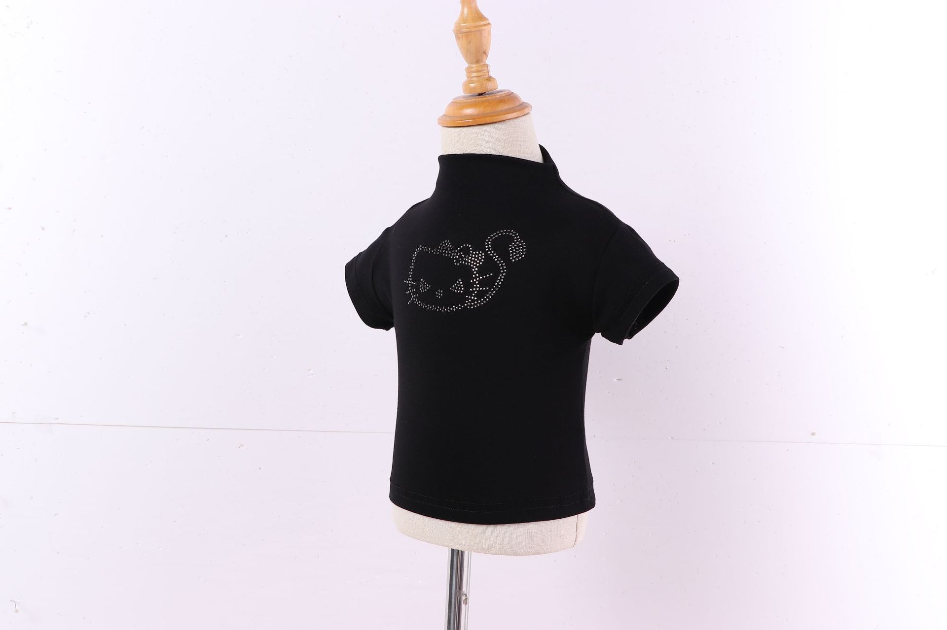 【재고정리】여아용 하이넥 여름 신상 허리라인 슬림핏 반팔 블랙 고양이 티셔츠 탑 인스타 트렌드스토어 가기