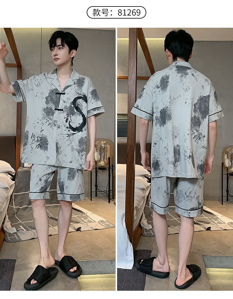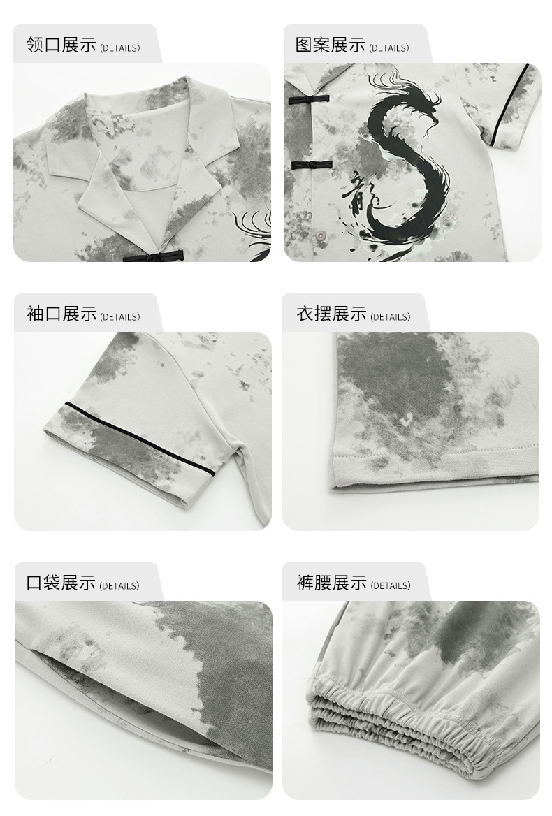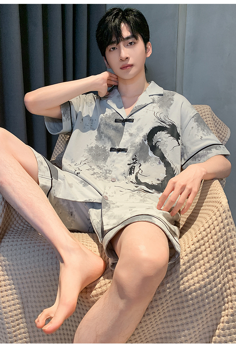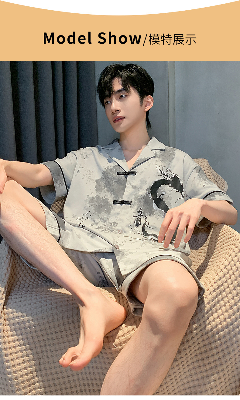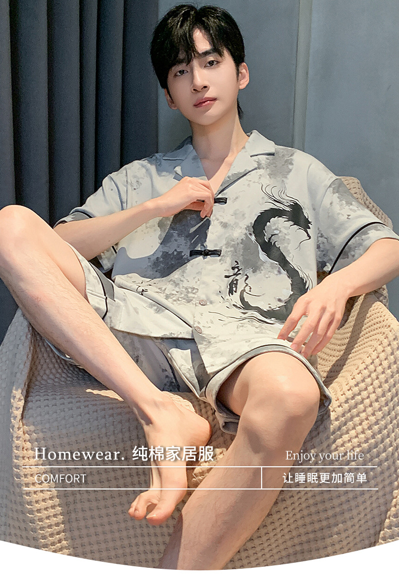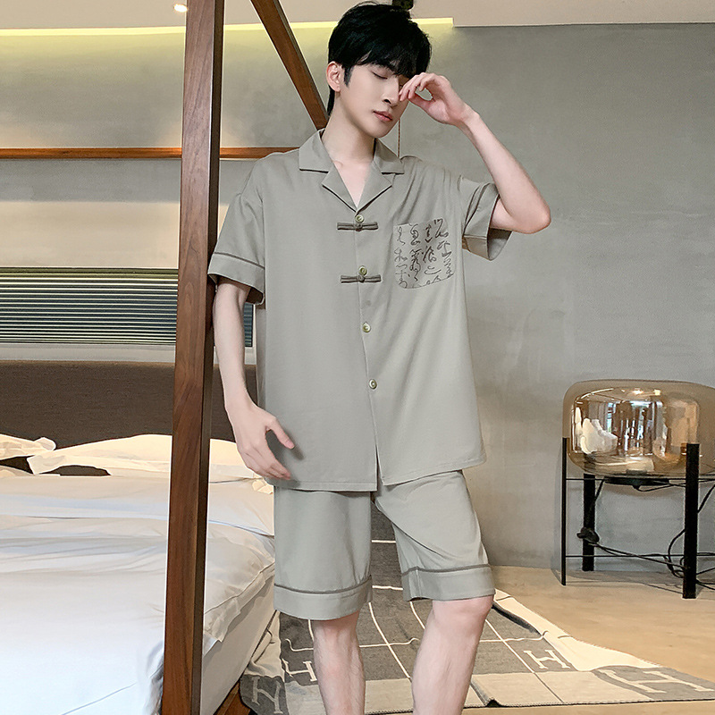 새로운 중국 스타일 국가 스타일 순면 남성 잠옷 여름 반팔 2024 새로운 스타일 하이 엔드 의류 플러스 사이즈 홈 의류스토어 가기