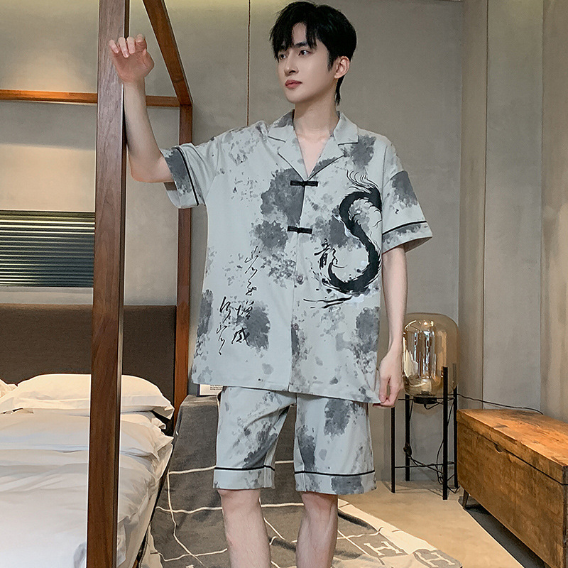 새로운 중국 스타일 국가 스타일 순면 남성 잠옷 여름 반팔 2024 새로운 스타일 하이 엔드 의류 플러스 사이즈 홈 의류