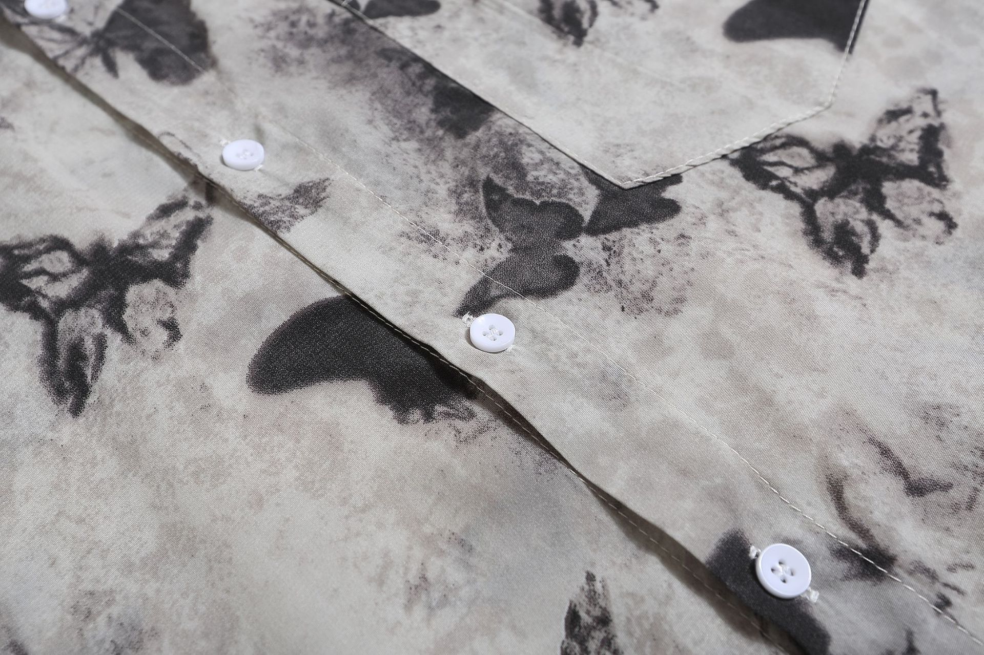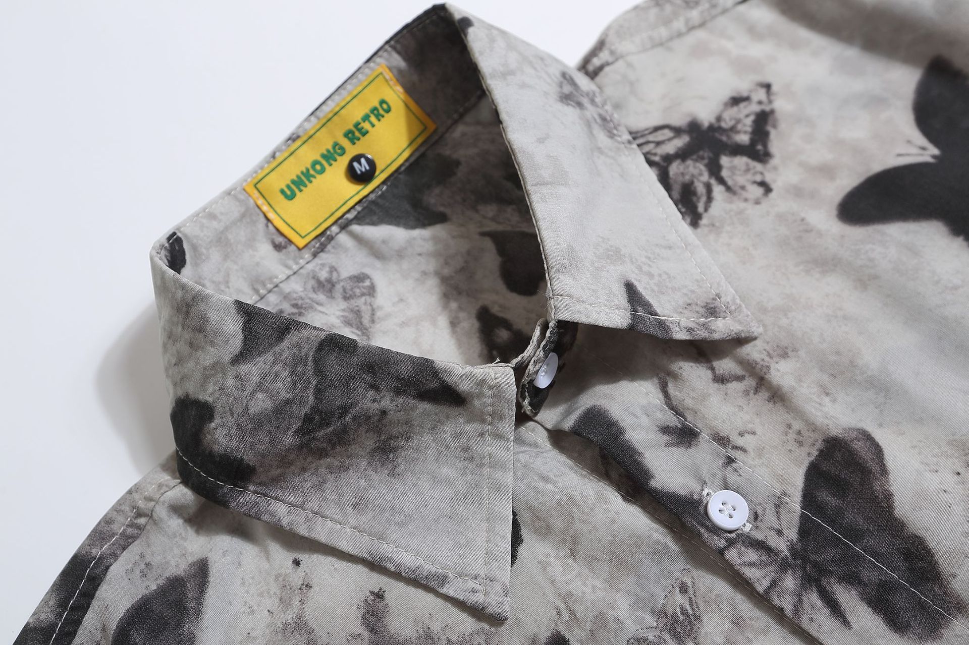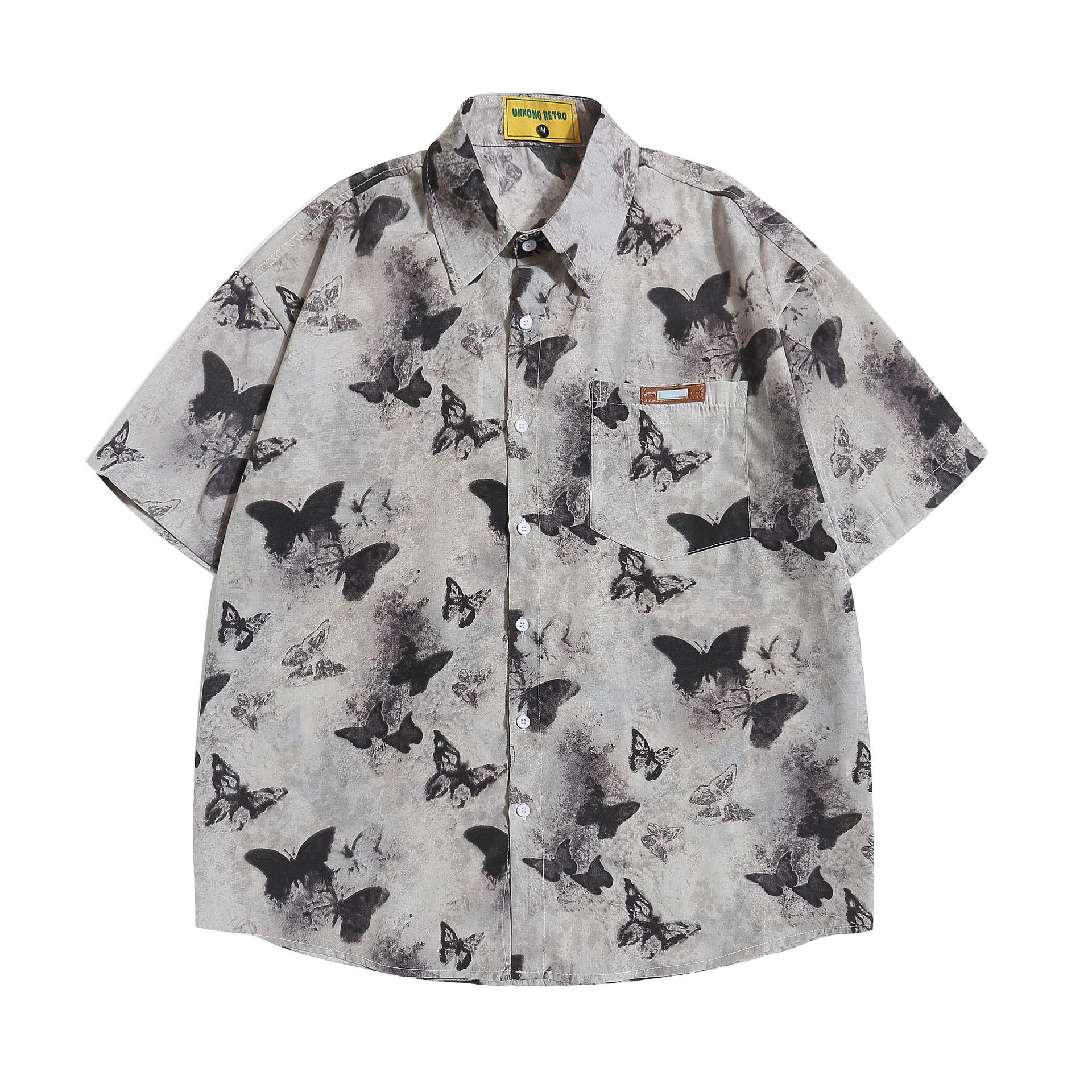 여름 미국 복고풍 전체 인쇄 나비 짧은 소매 셔츠 남성과 여성의 느슨한 디자인 감각 틈새 반 소매 탑