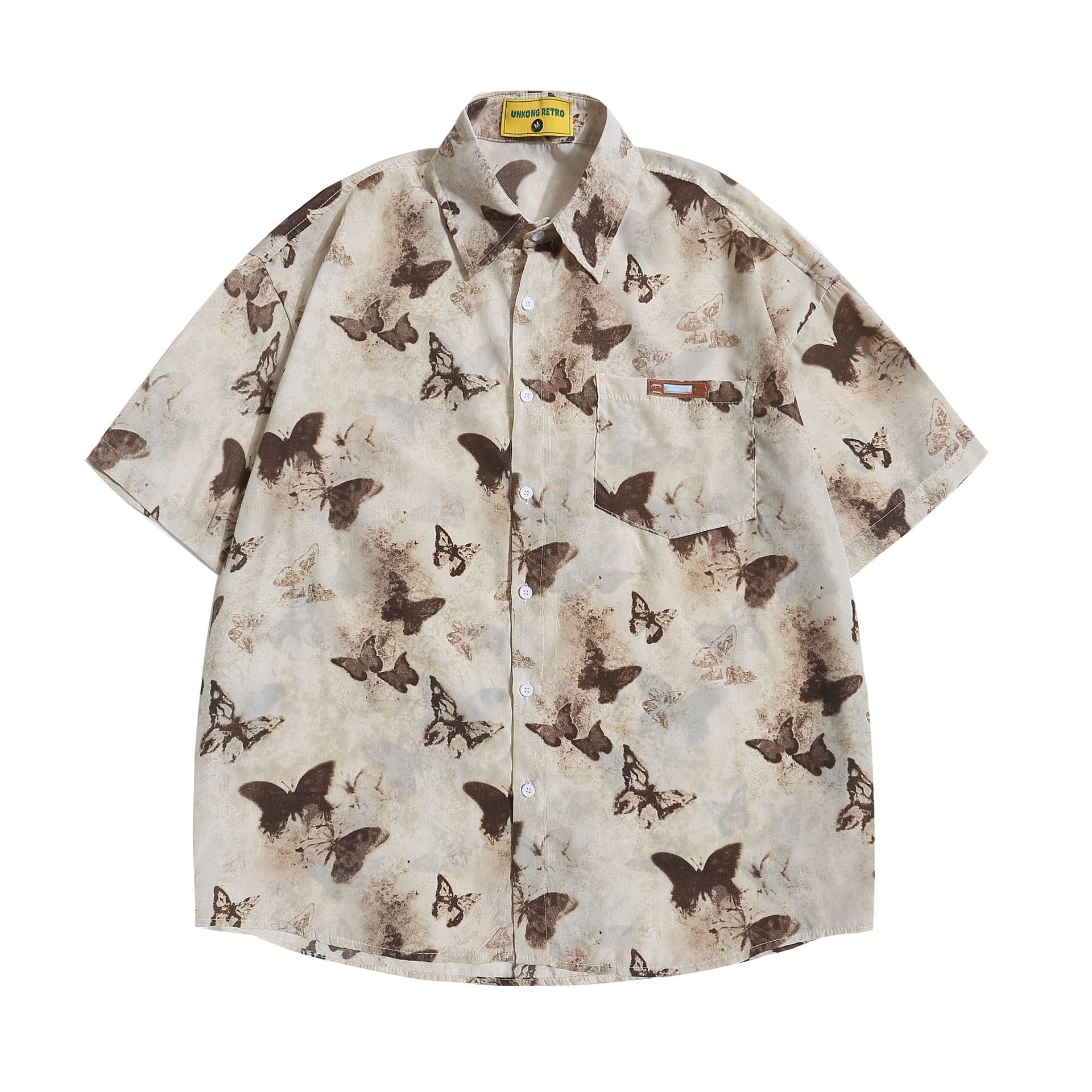 여름 미국 복고풍 전체 인쇄 나비 짧은 소매 셔츠 남성과 여성의 느슨한 디자인 감각 틈새 반 소매 탑스토어 가기