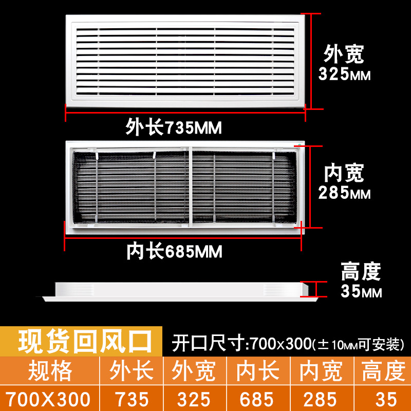 • 반환 공기 출구 700x300 필터 스크린과 함께 제공/열 수 있습니다