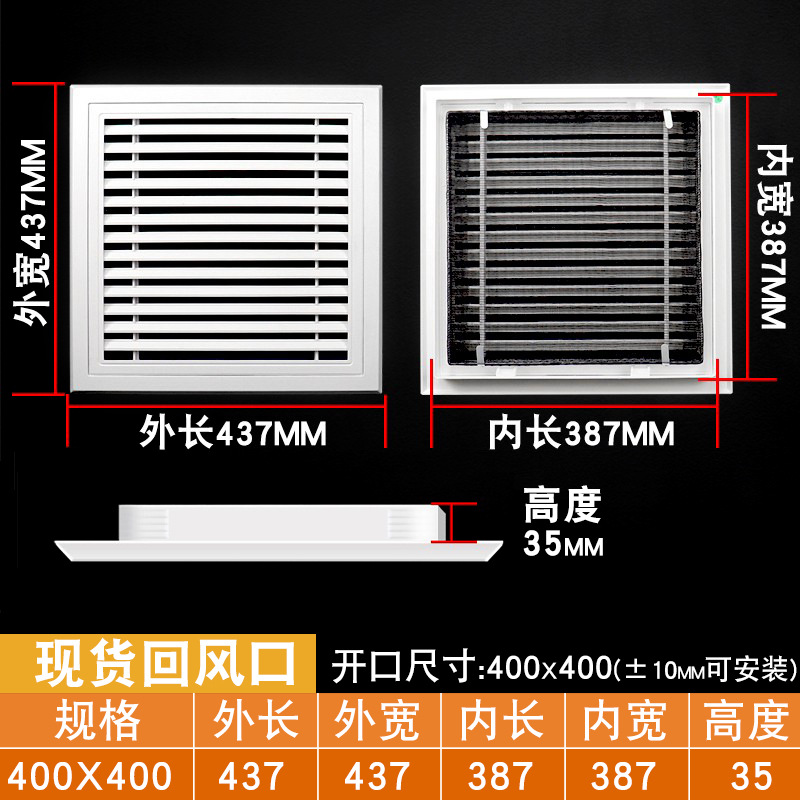 • 반환 공기 출구 400x400 필터 스크린과 함께 제공/열 수 있습니다