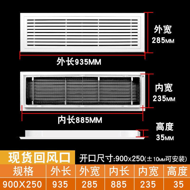 • 반환 공기 출구 900x250 필터 스크린과 함께 제공/열 수 있습니다