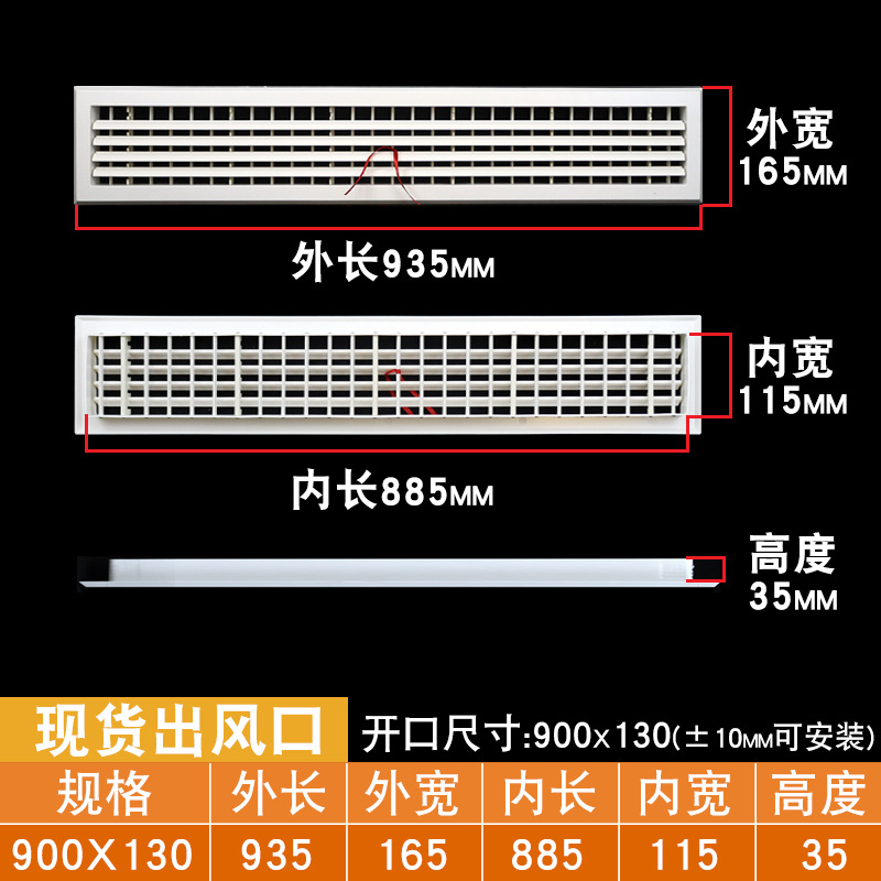 • 공기 콘센트 900x150 더블 레이어 블레이드 조절 가능
