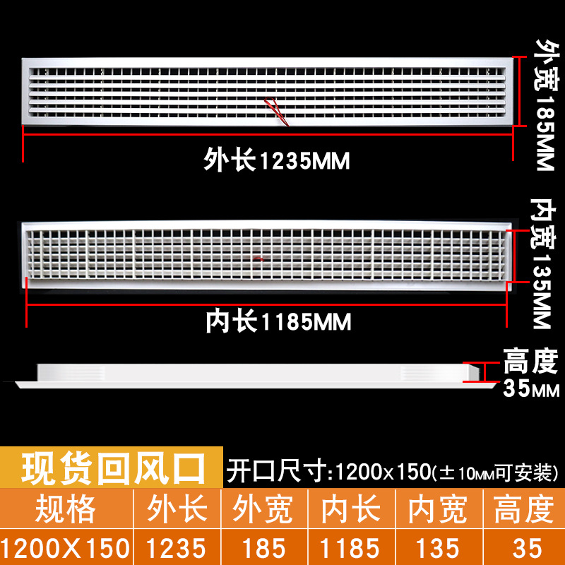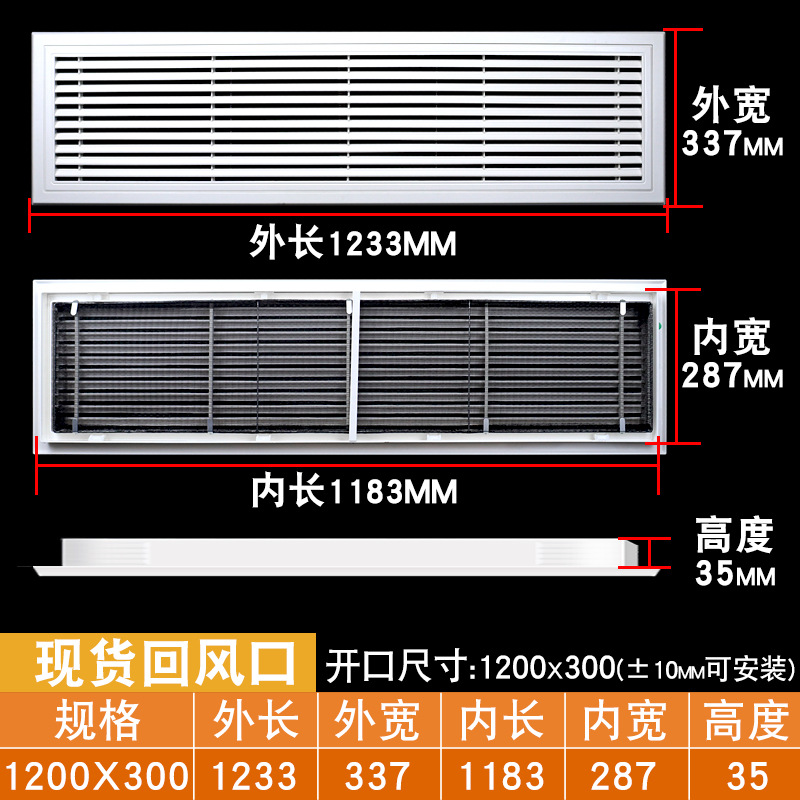 • 반환 공기 출구 1200x300 필터 스크린과 함께 제공/열 수 있습니다