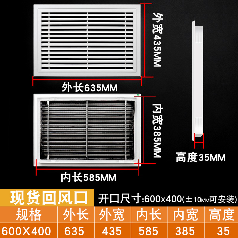 • 반환 공기 출구 600x400 필터 스크린과 함께 제공/열 수 있습니다