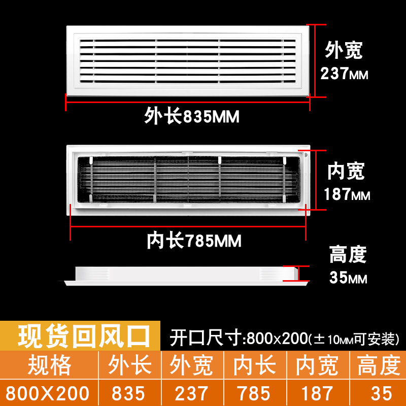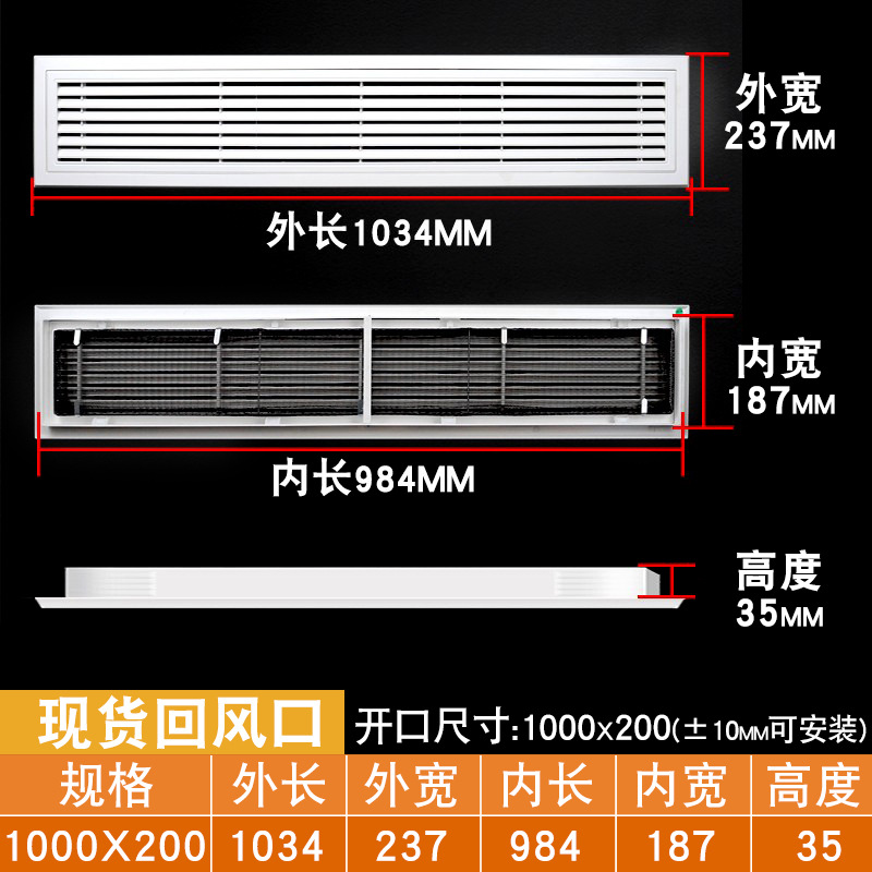 • 반환 공기 출구 1000x200 필터 스크린과 함께 제공/열 수 있습니다