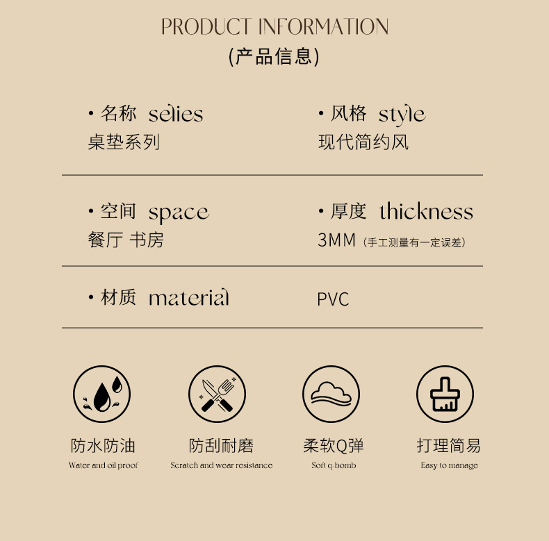 고급 감각 식탁 매트 방열 방열 매트 방수 및 내유성 환경 보호 PVC 가죽 식탁 천 커피 테이블 매트스토어 가기