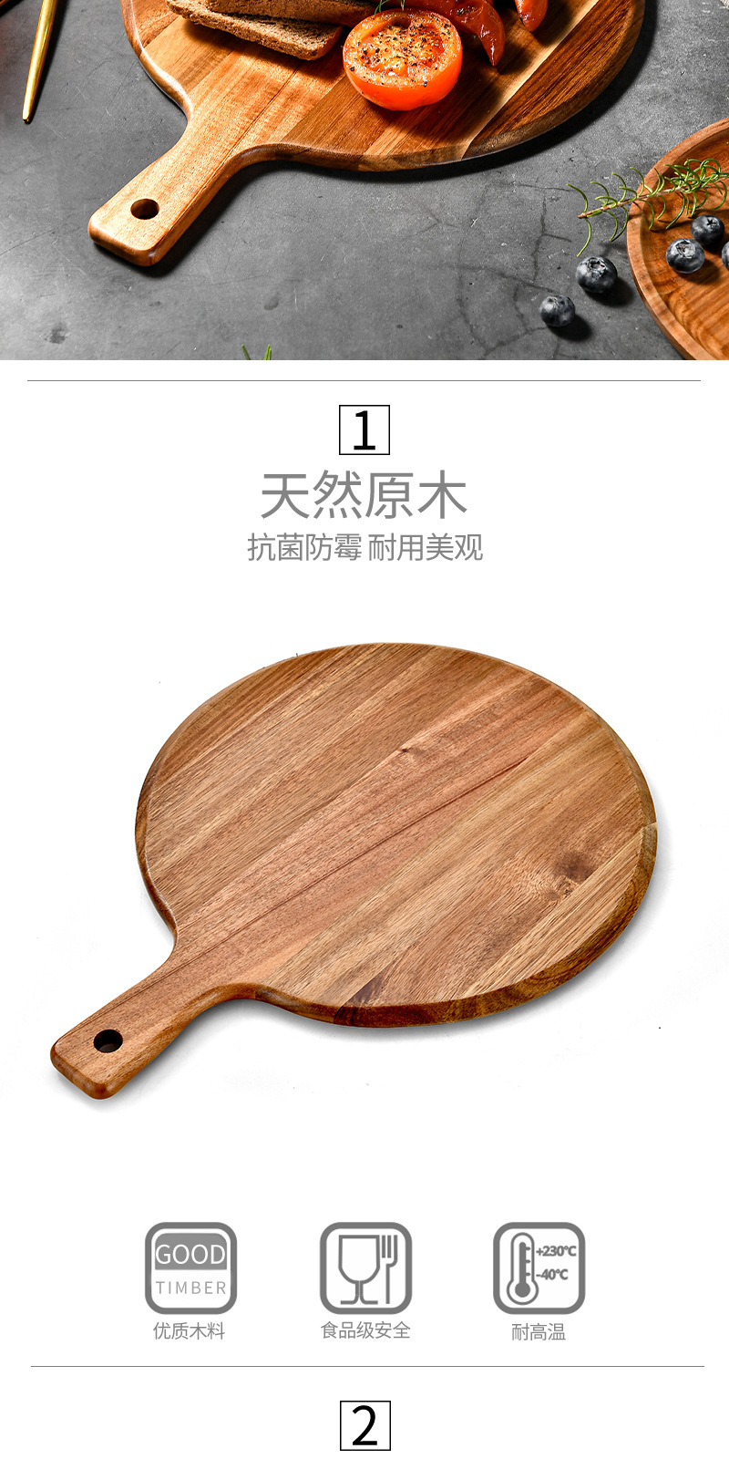 아메리칸 스타일 솔리드 우드 피자 플레이트 나무 스테이크 튀김 트레이 핸들 서양 음식 스테이크 디너 플레이트 딤섬 케이크 플레이트스토어 가기