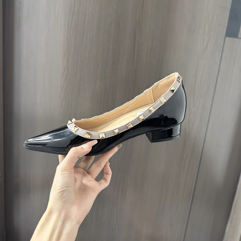 벌거 벗은 회색 두꺼운 뒤꿈치 6cm 리벳 신발 패션 기질 두꺼운 뒤꿈치 여성 신발 클래식 기질 부드러운 특허 가죽 여성 신발스토어 가기