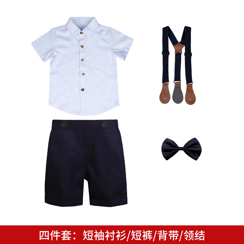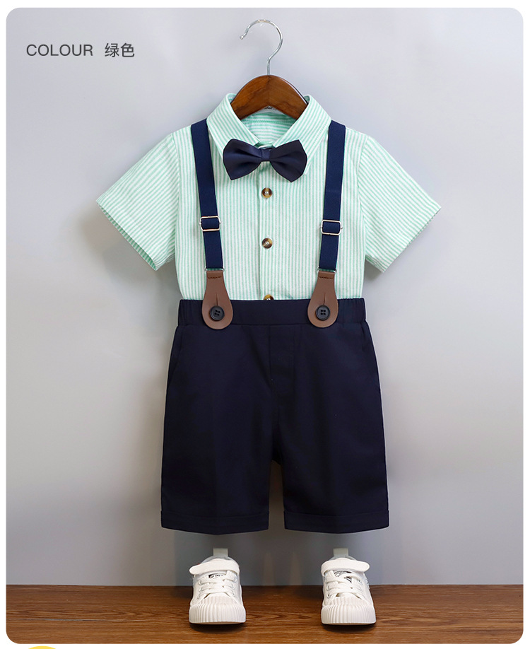 국경 간 대외 무역 어린이 원피스 여름 새 줄무늬 면 반팔 스트랩 세트 졸업 사진 어린이 의류스토어 가기