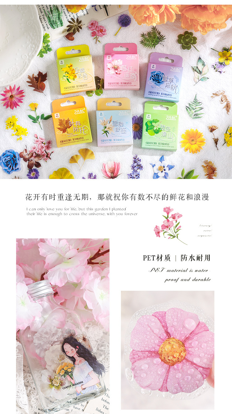 Yuezhen 국경 특별 원격 지식 꽃 가을 방수 애완 동물 손 계정 스티커 바람 창조적 인 스티커 손 계정 소재 종이