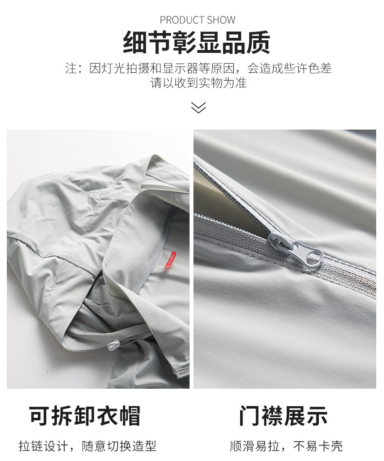 남성용 여름 자외선 차단 의류 upf50 + 자외선 차단 아이스 실크 지퍼 탈착식 시원한 통기성 후드 낚시 의류스토어 가기