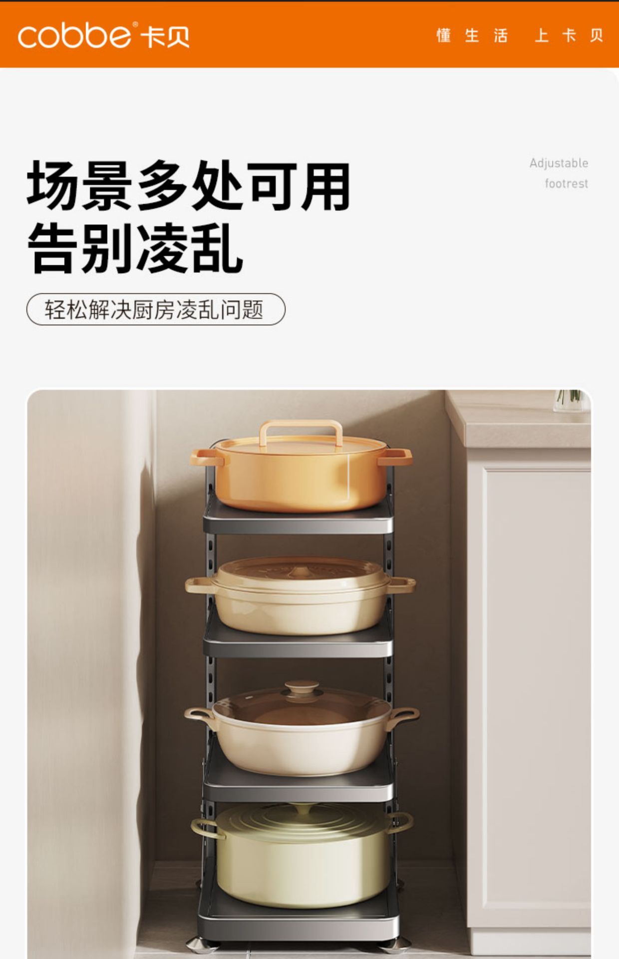 캐브 주방 바닥 스토리지 랙 가정용 다기능 조리기구 스토리지 랙 다층 캐비닛 스토브 레이어 팟 랙