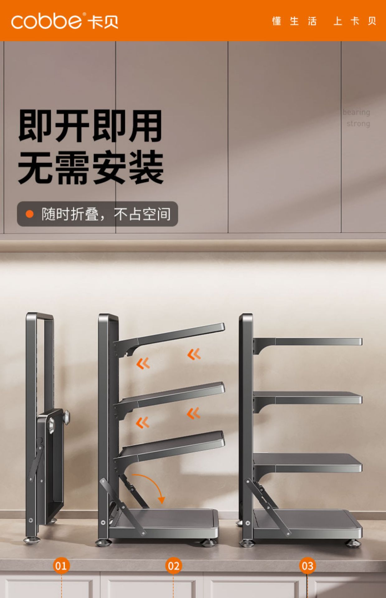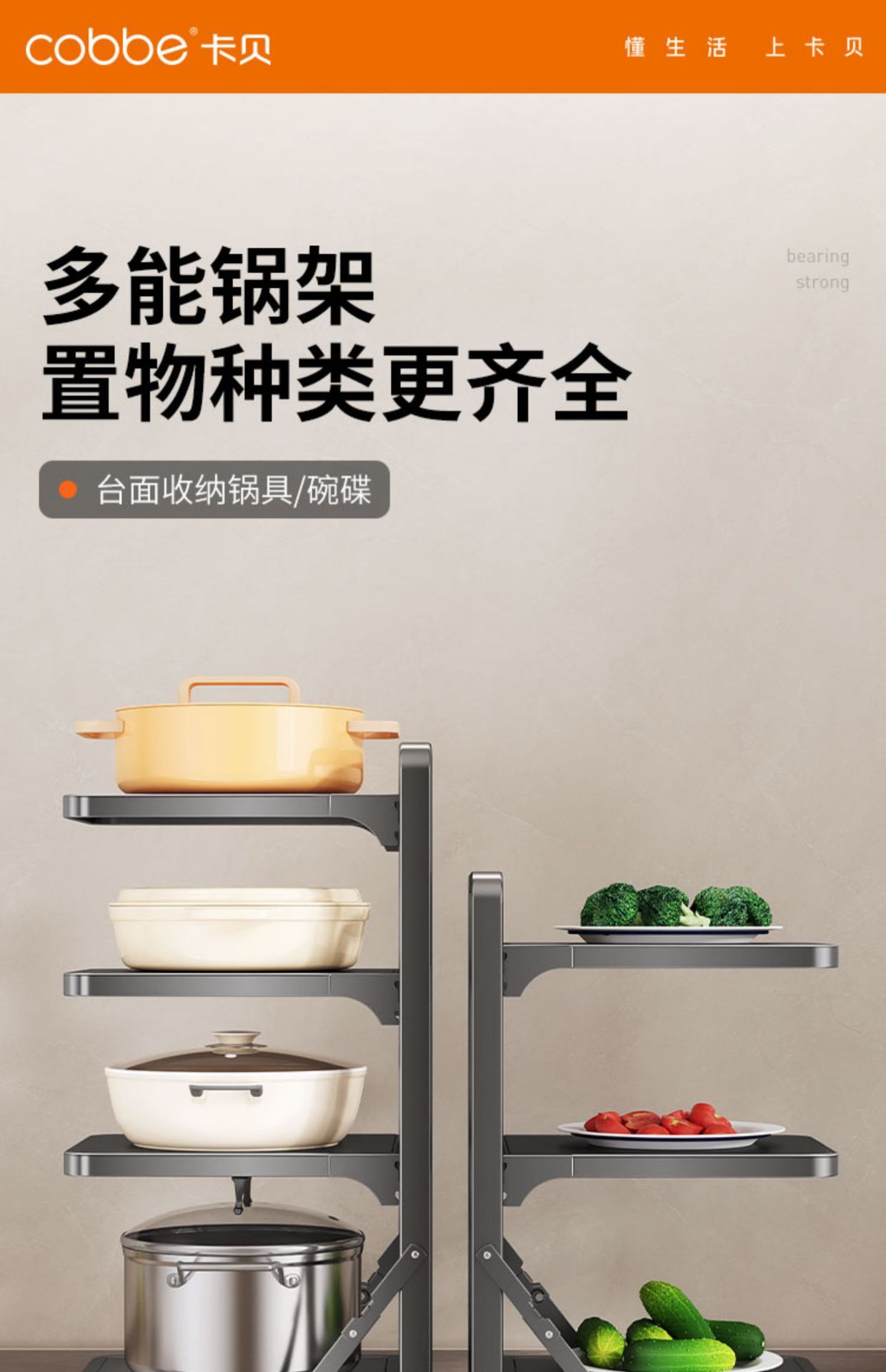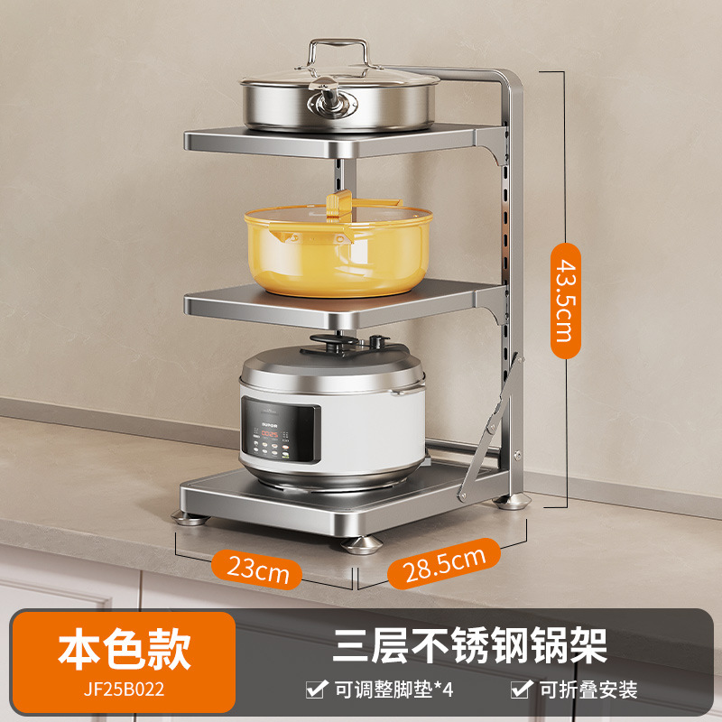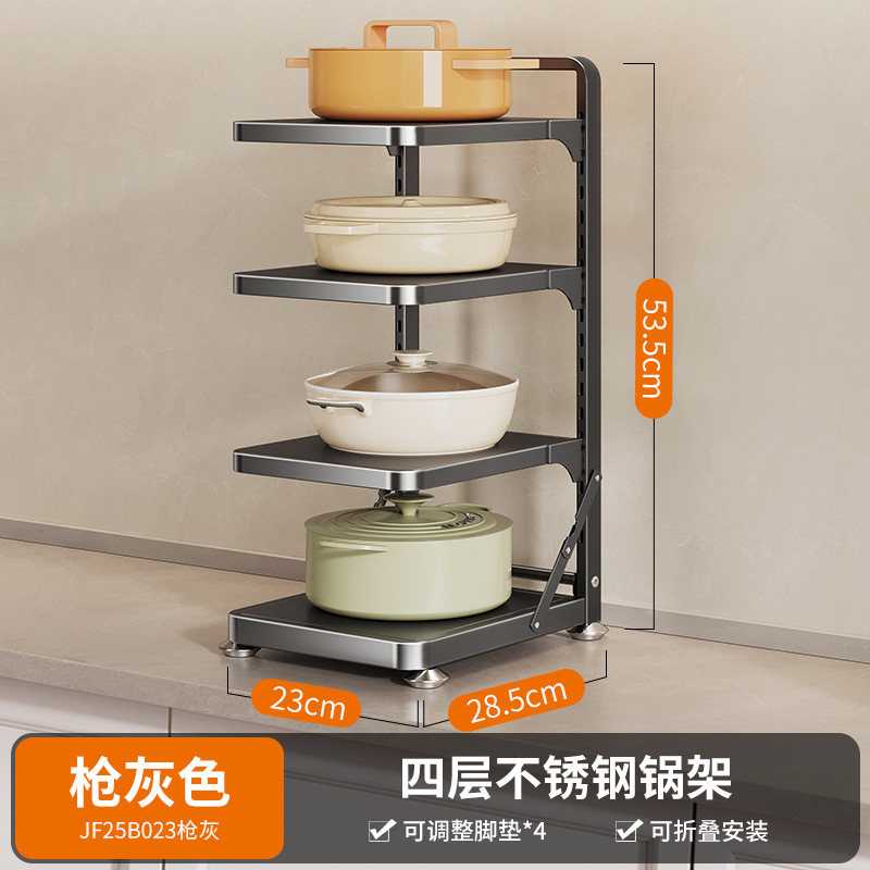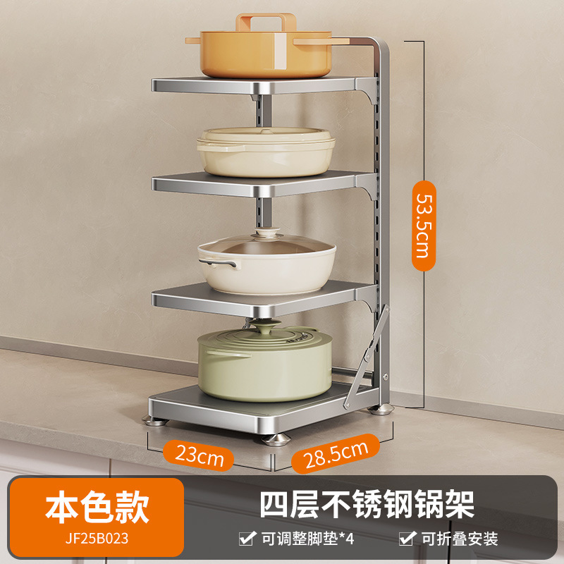 • 자연 색상 냄비 랙 4 층 (접이식 레이어 높이 조정)