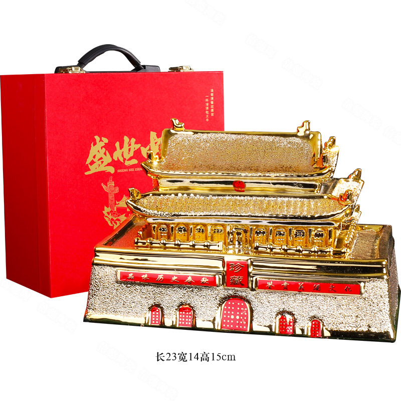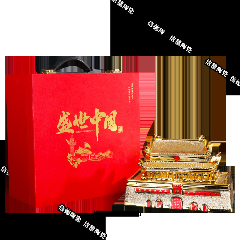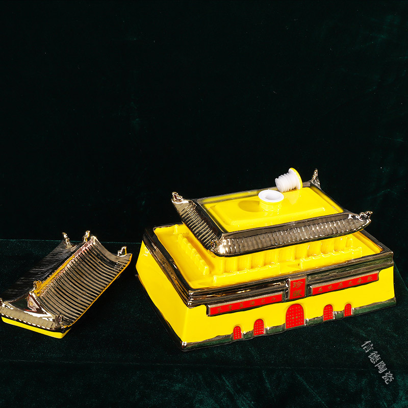 천안문 광장 와인 병 골드 도금 프로스트 골드 Jingdezhen 세라믹 와인 병 창조적 인 천안문 광장 장식품 혁신적인 와인 병