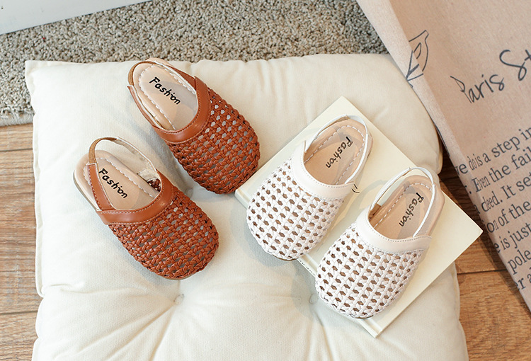 여자 짠 샌들 2025 여름 새로운 패션 한국어 버전 할머니 신발 부드러운 바닥 어린이 중공 발가락 로마 신발