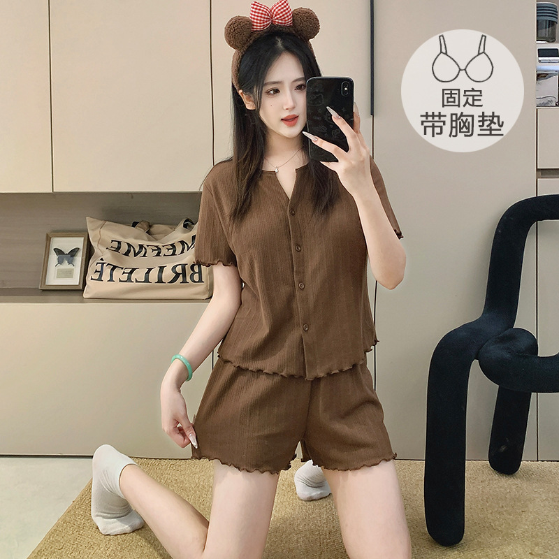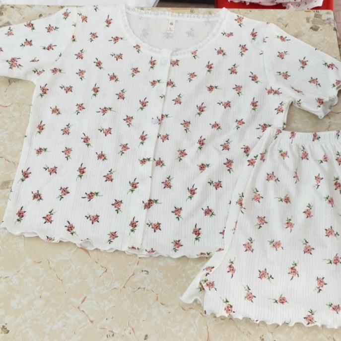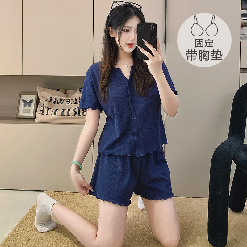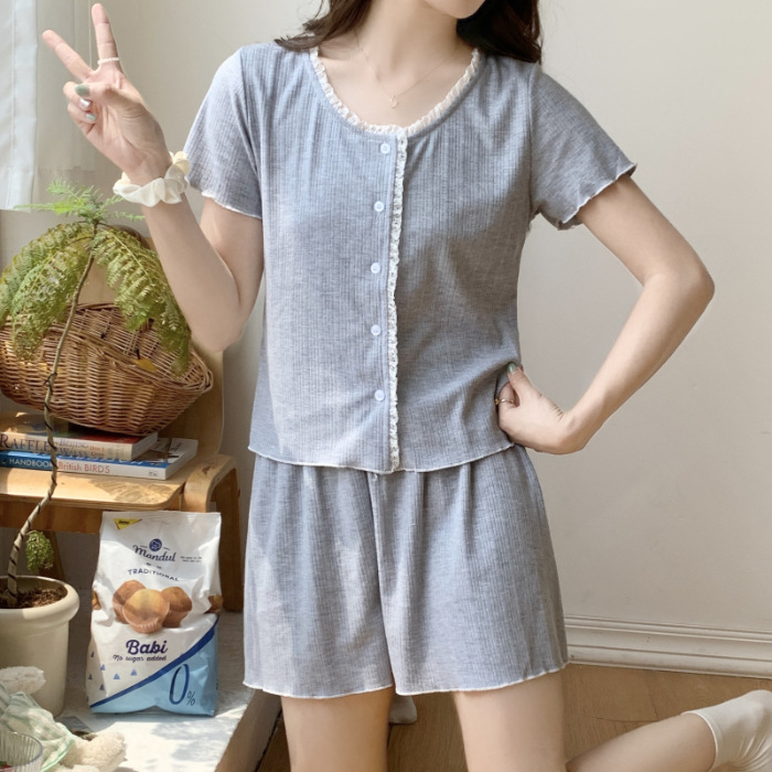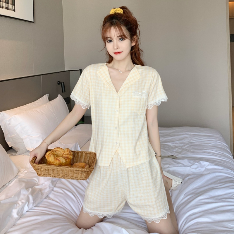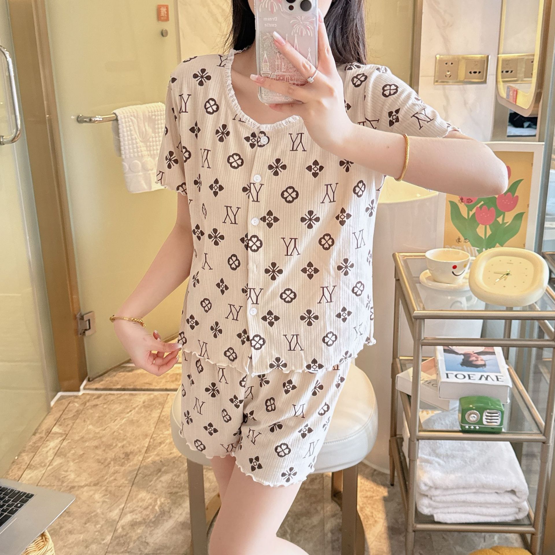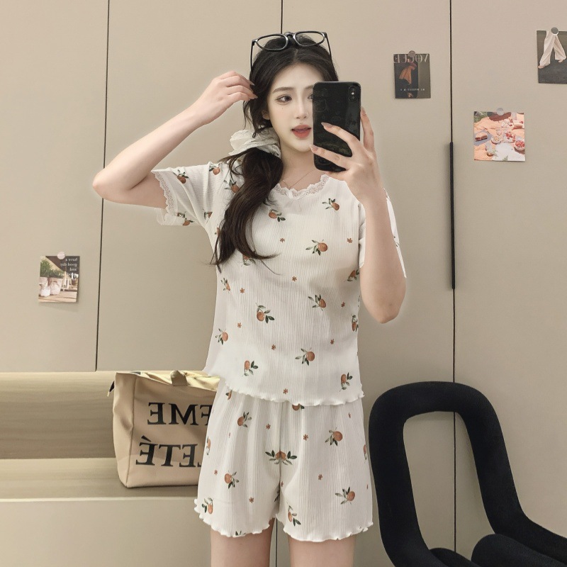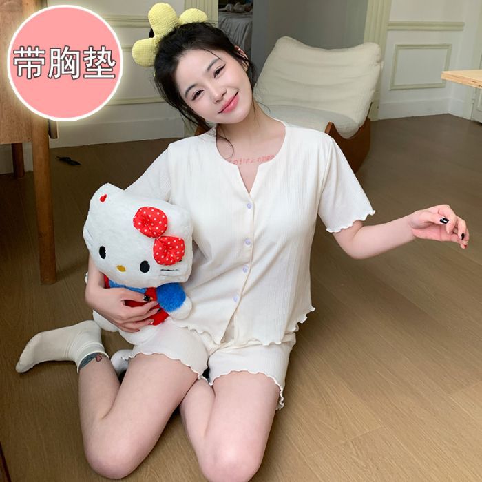 짧은 소매 반바지 세트 여성용 꽃 달콤한 귀여운 소녀의 카디건 홈 의류 캐주얼 프린트 의류스토어 가기