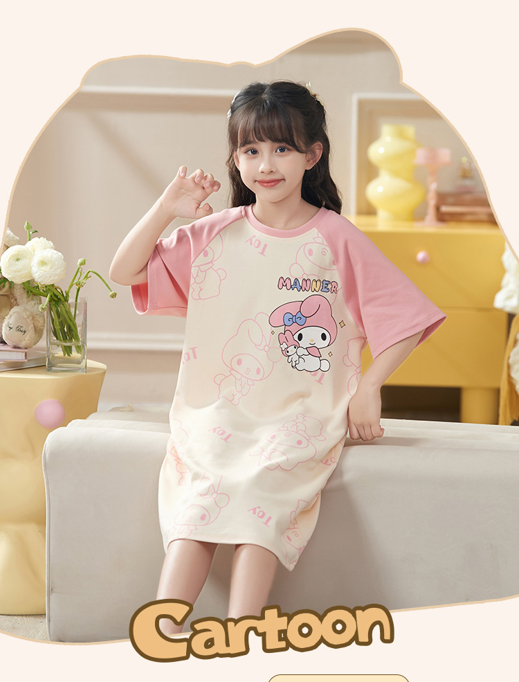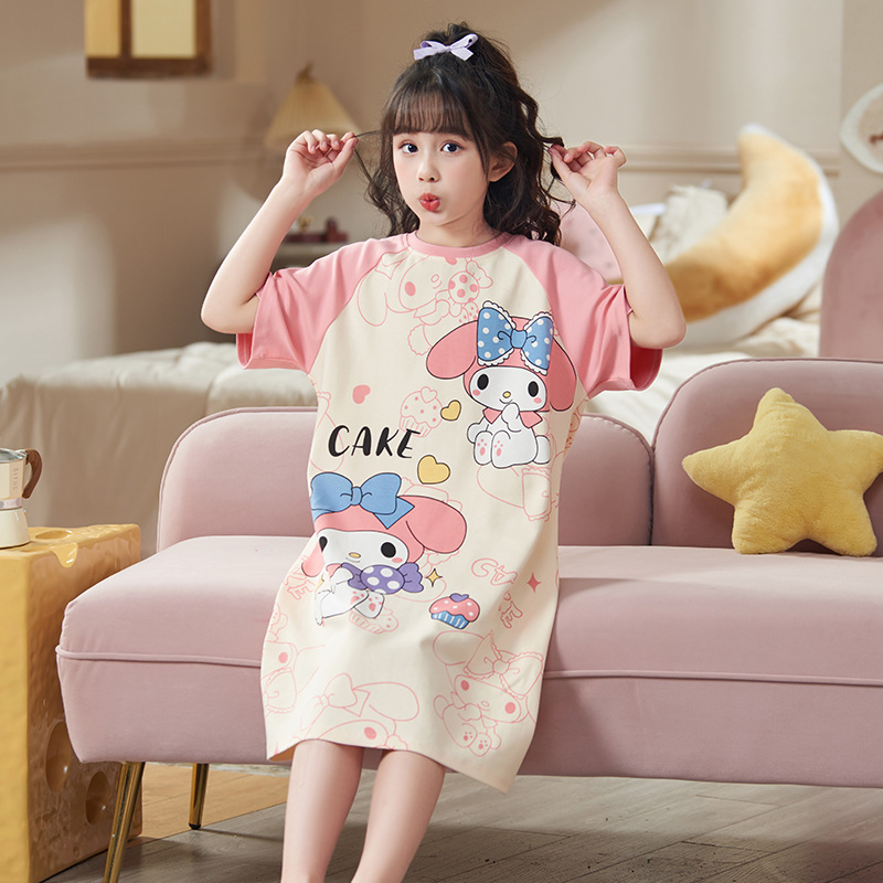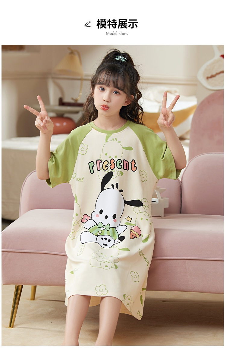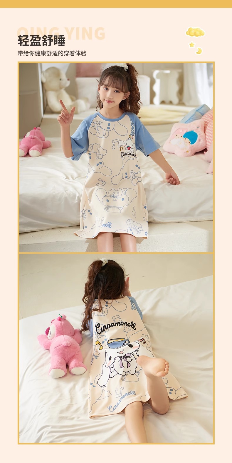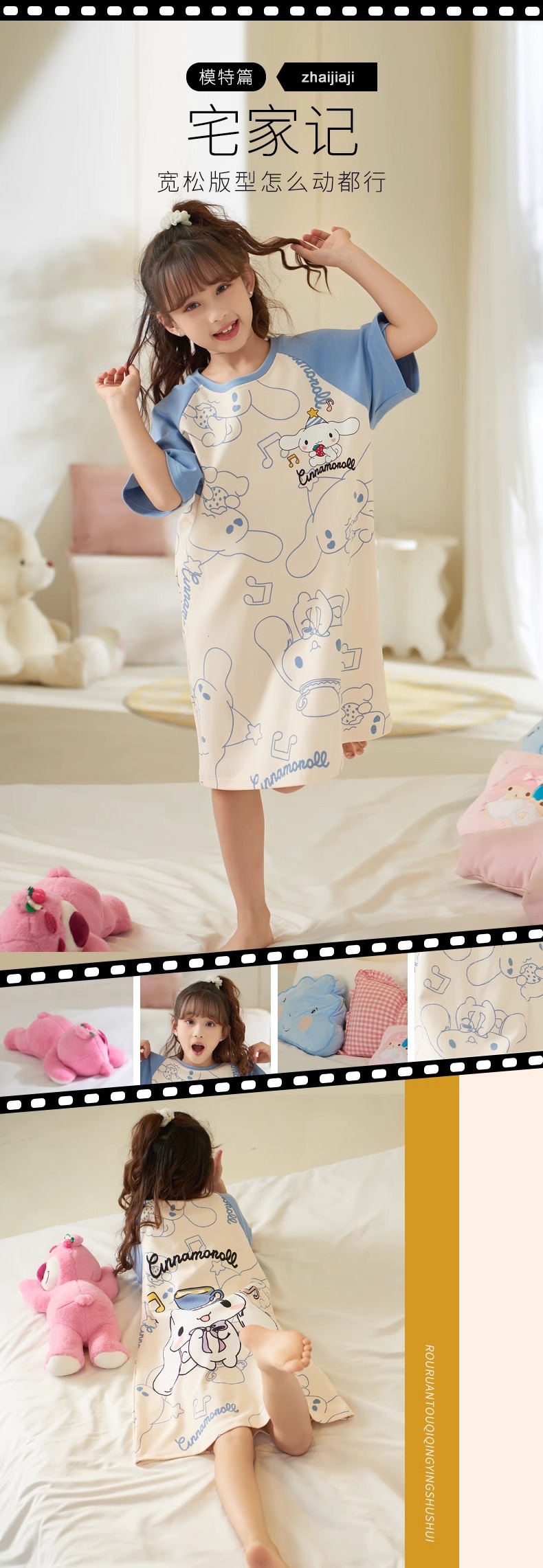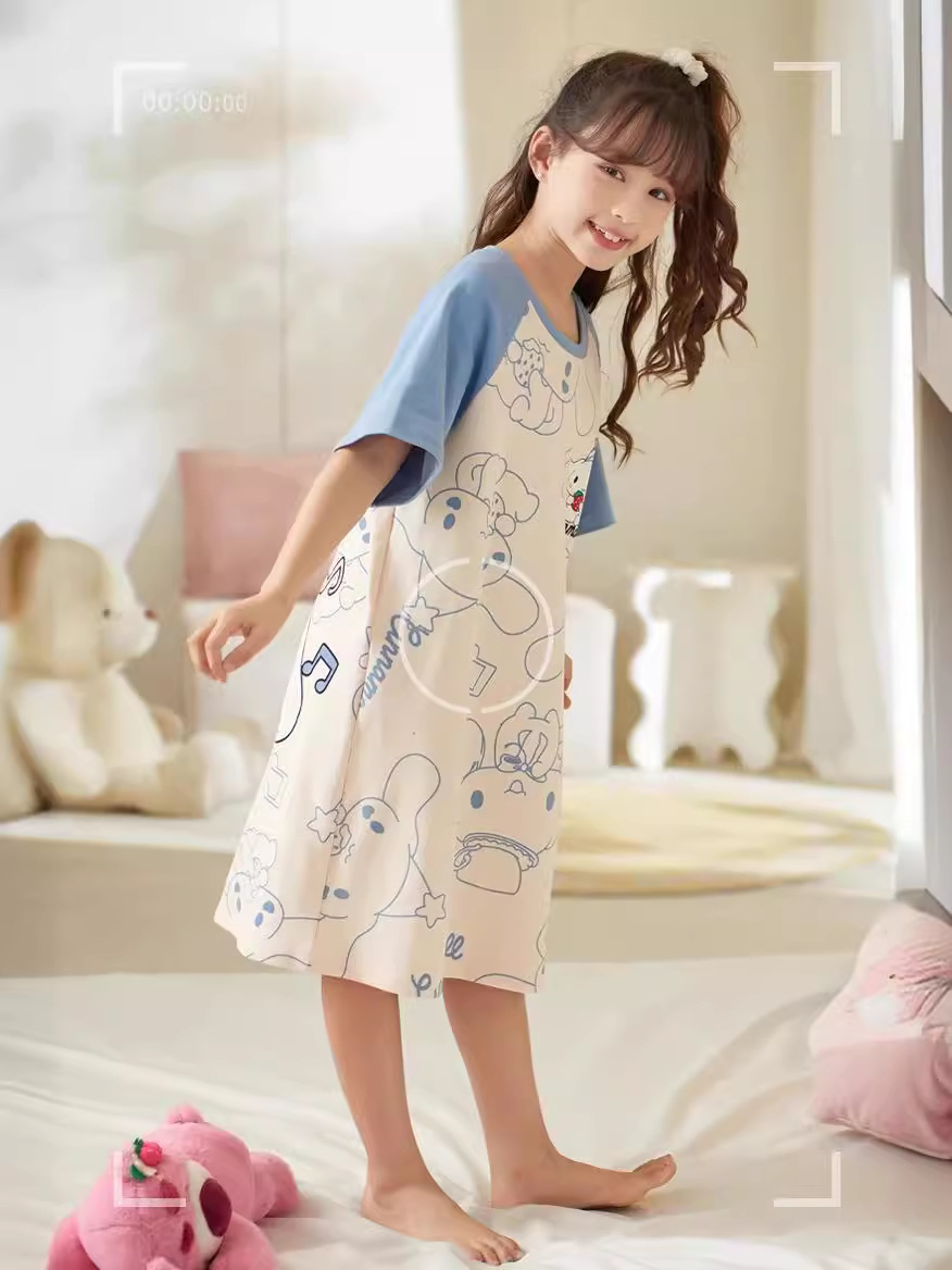 어린이 잠옷 여름 반소매 코튼 얇은 아기 큰 아이 작은 소녀 잠옷 2025 새로운 공주 스타일스토어 가기