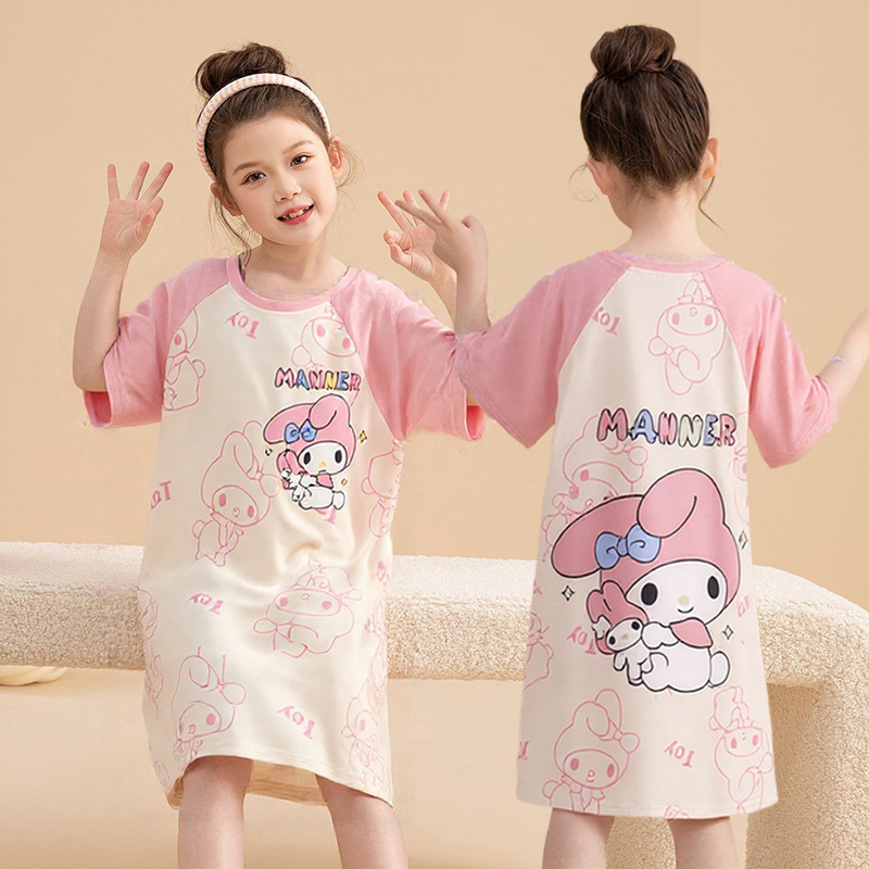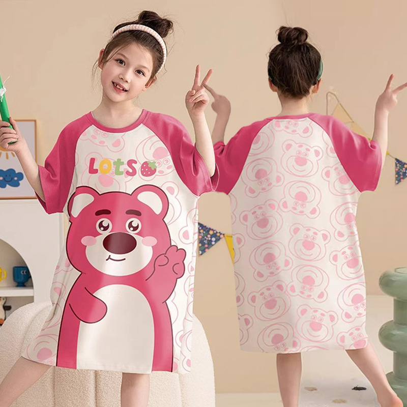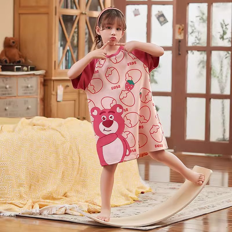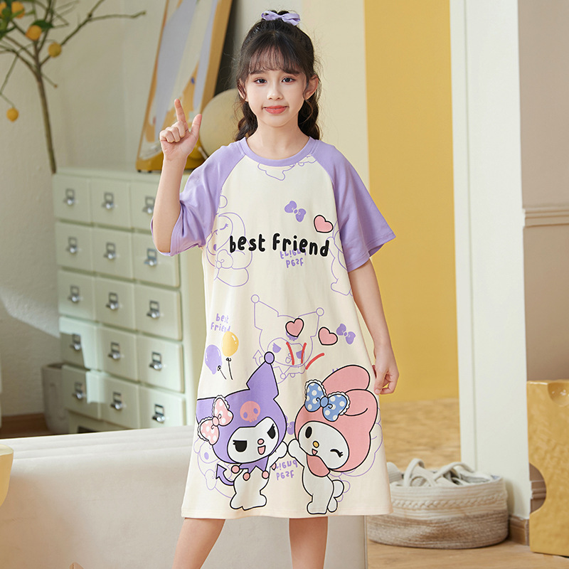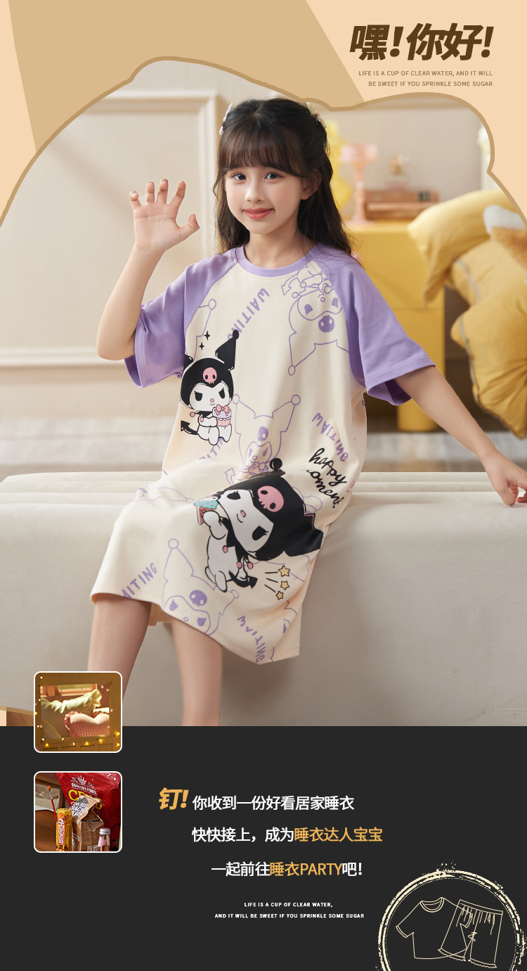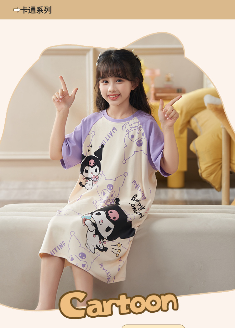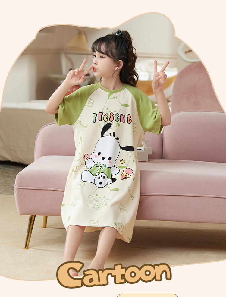 어린이 잠옷 여름 반소매 코튼 얇은 아기 큰 아이 작은 소녀 잠옷 2025 새로운 공주 스타일스토어 가기