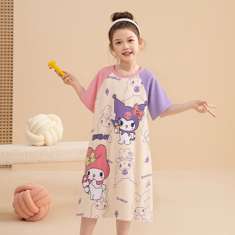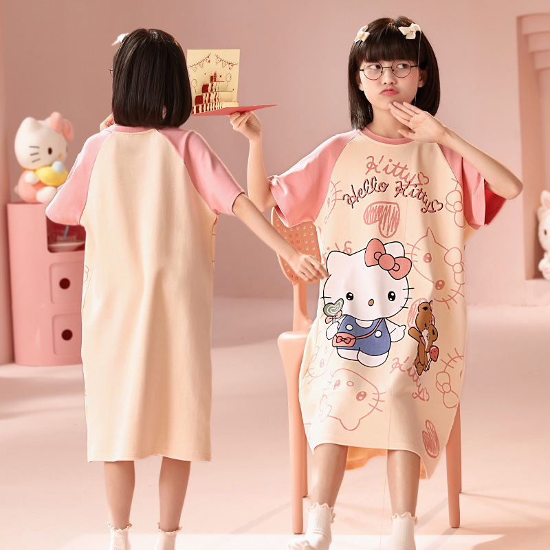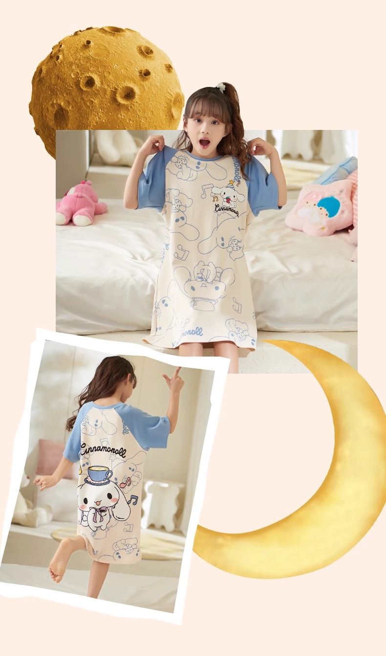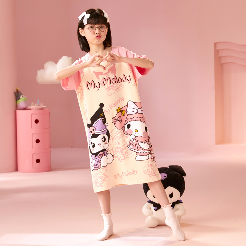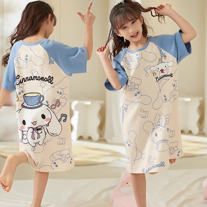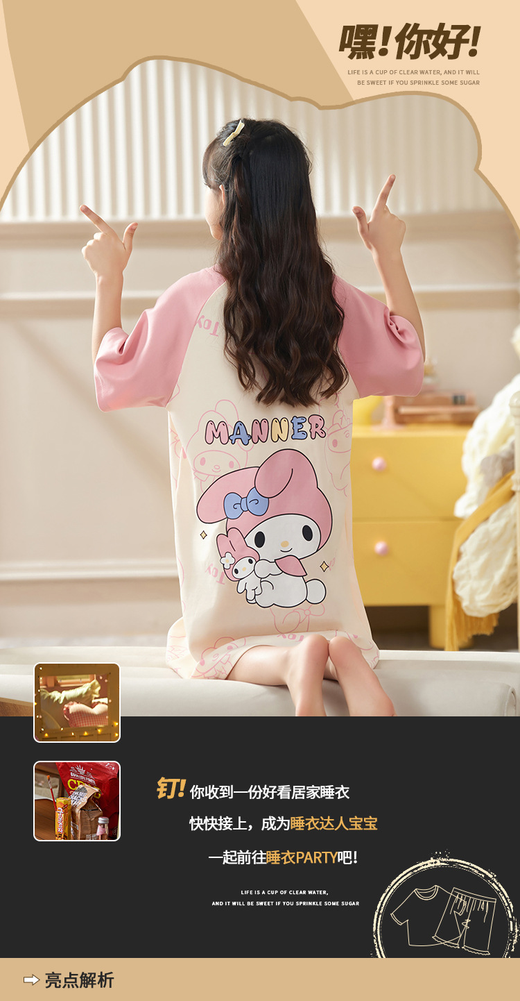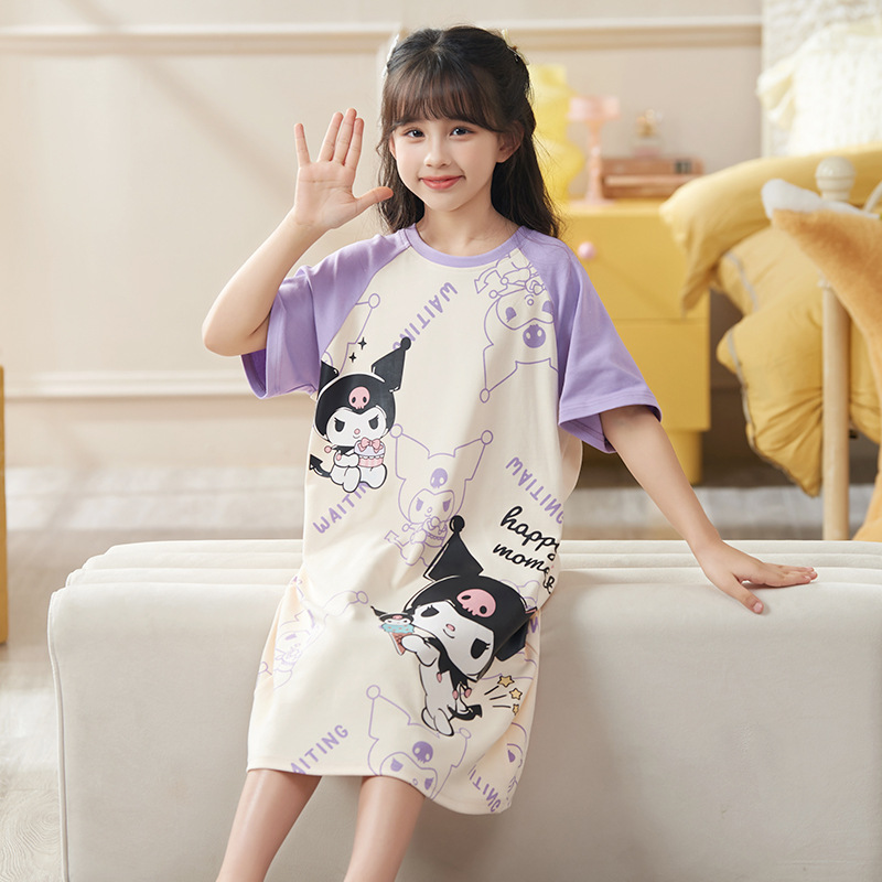 어린이 잠옷 여름 반소매 코튼 얇은 아기 큰 아이 작은 소녀 잠옷 2025 새로운 공주 스타일스토어 가기