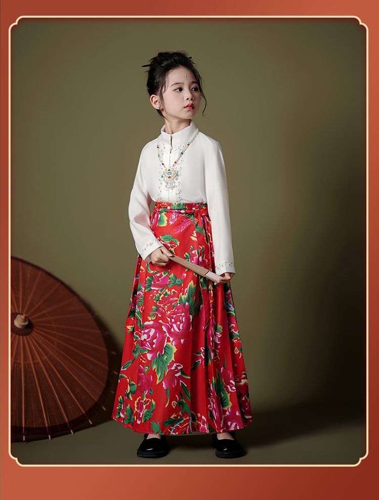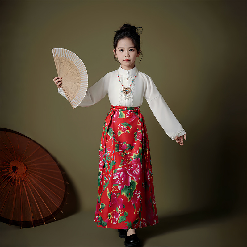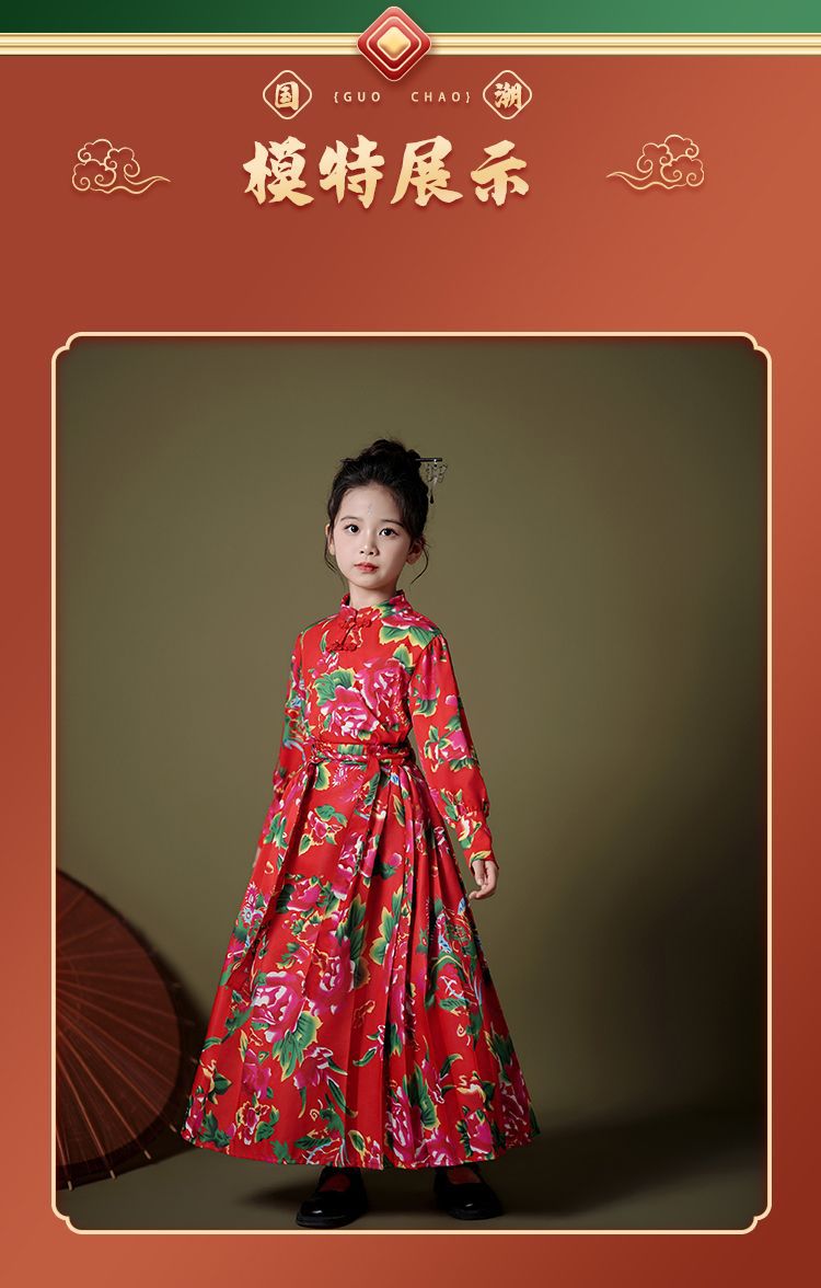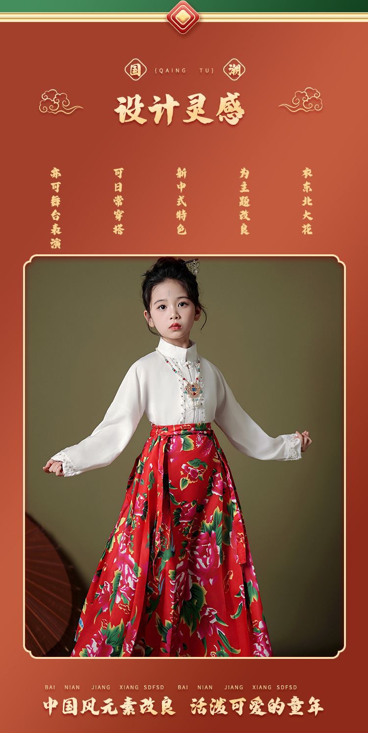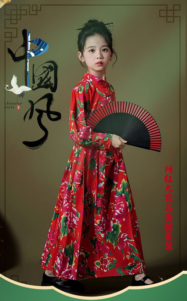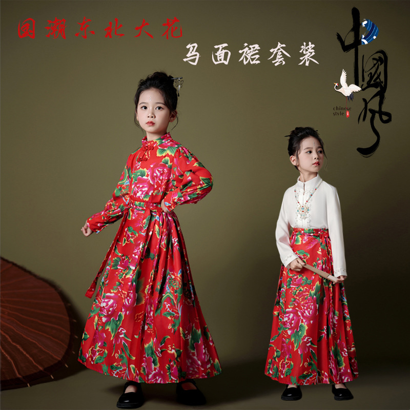 소녀의 동북 큰 꽃 짧은 치마 세트 6 월 1 일 공연 세트 여름 뉴 2024 인터넷 레드 서양식 말 머리