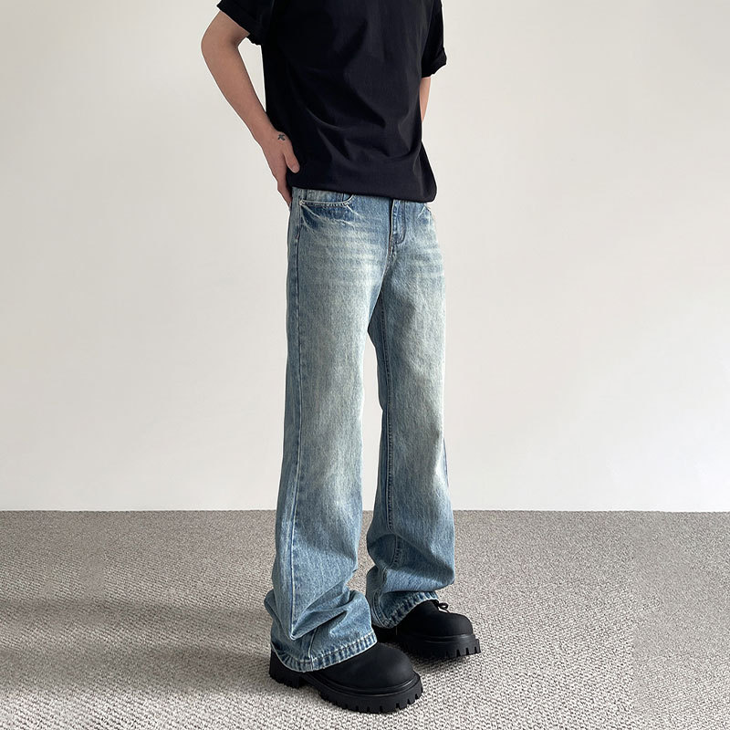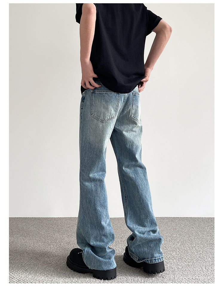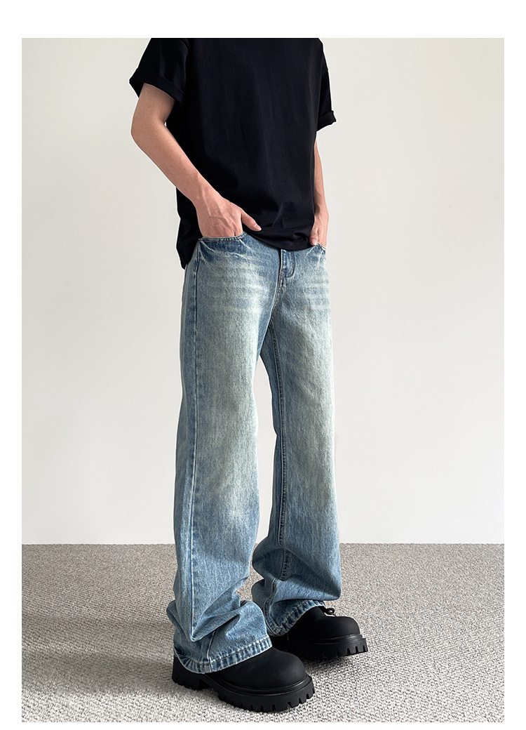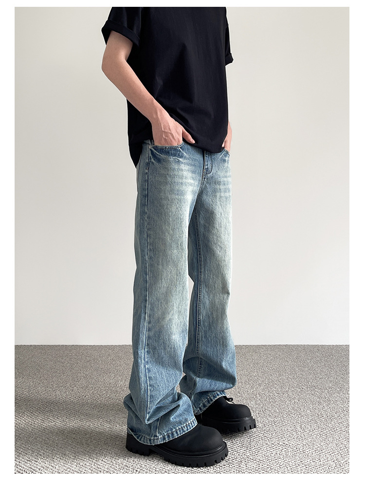 미국식 하이 스트리트 클렌핏 낡은 세탁 청바지 남성 디자인 센스 스트레이트 마이크로 슬림 바이브 트렌디 팬츠스토어 가기