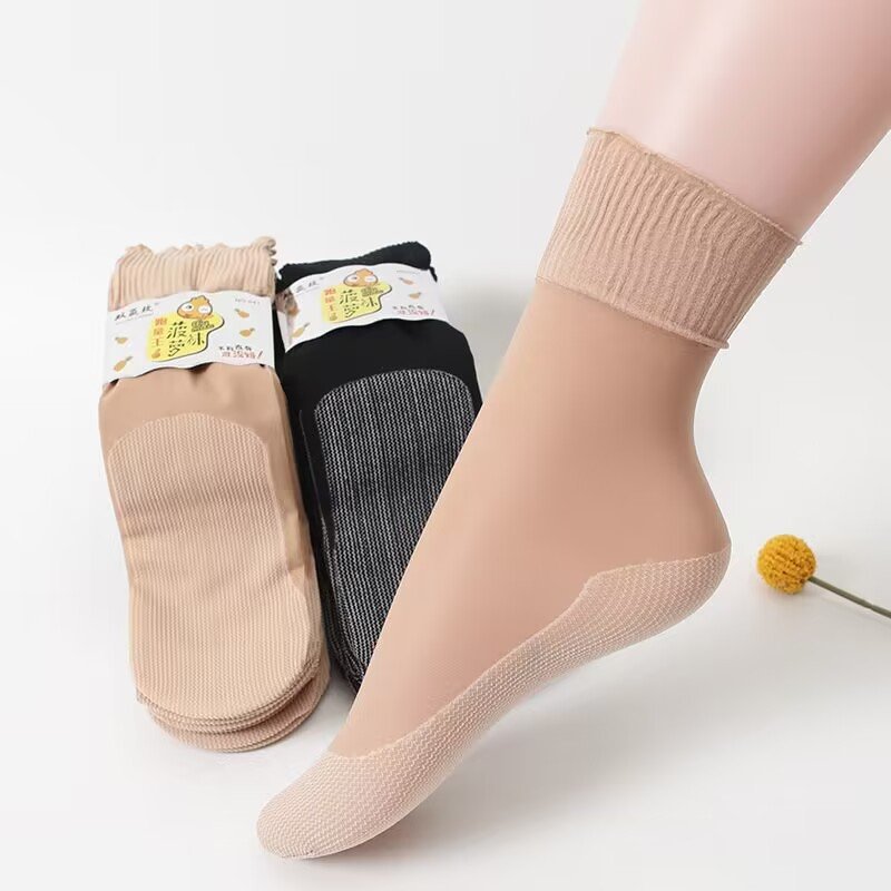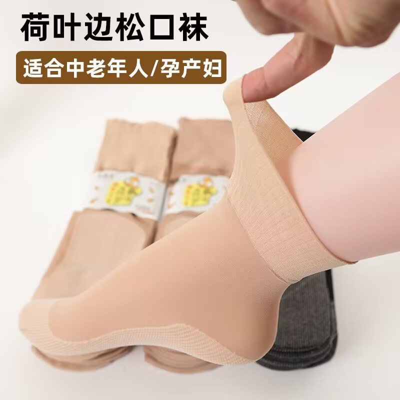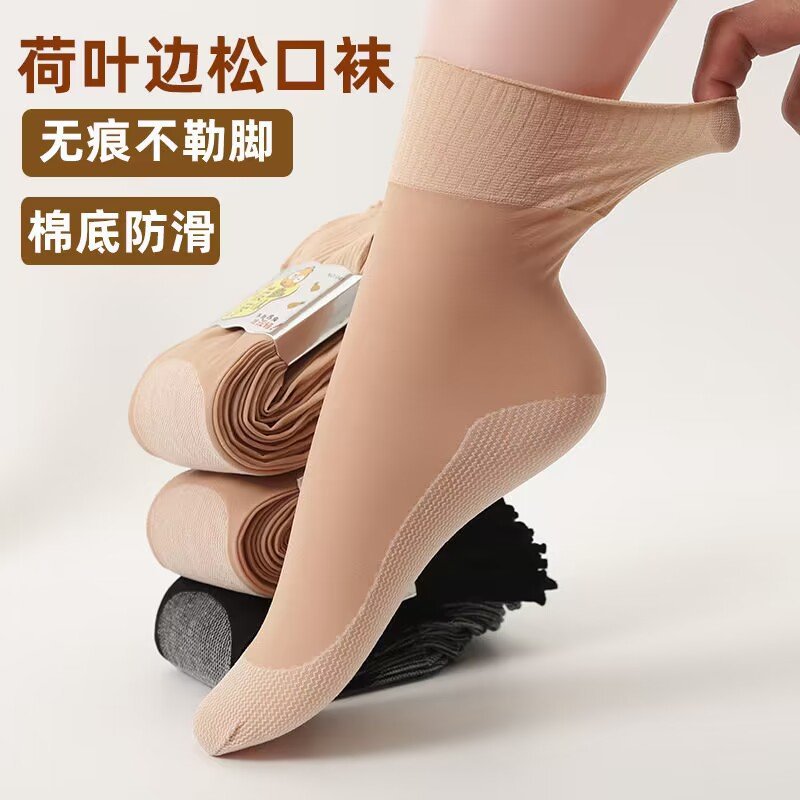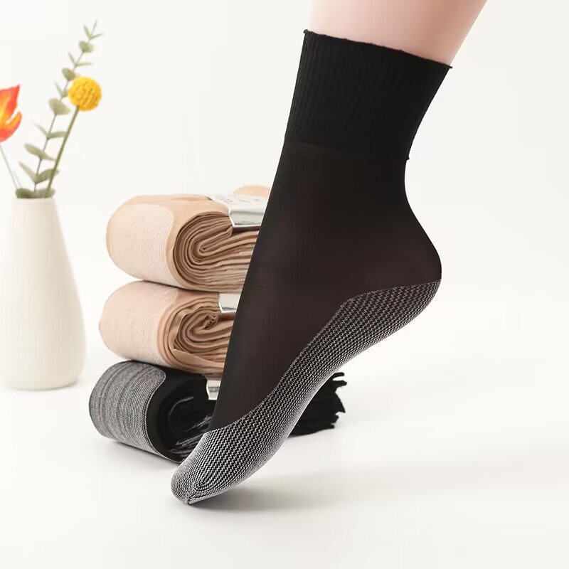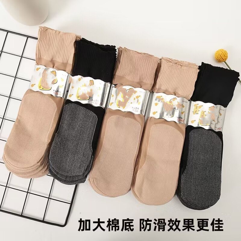 얇은 여성의 내마모성 미끄럼 방지 봄과 여름을 흡수하는 넓은 입면 바닥 땀이 나는 여성용 러플 쇼트 실크 스타킹스토어 가기