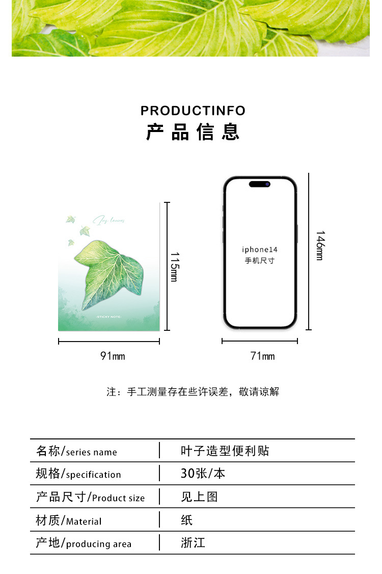 신선한 잎 컬렉션 포스트잇 노트 시뮬레이션 잎 N 작은 신선한 메시지 노트 노트스토어 가기