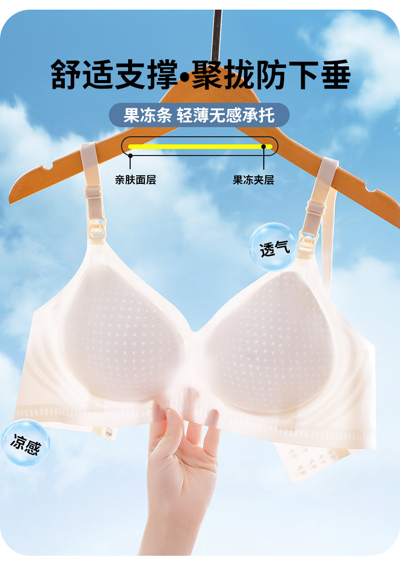 여름 경량 아이스 실크 어퍼 오픈 버클 속옷 원피스 유방 커버 원활한 얼음 느낌 젤리 스트립 소프트 지원 간호 브래지어스토어 가기