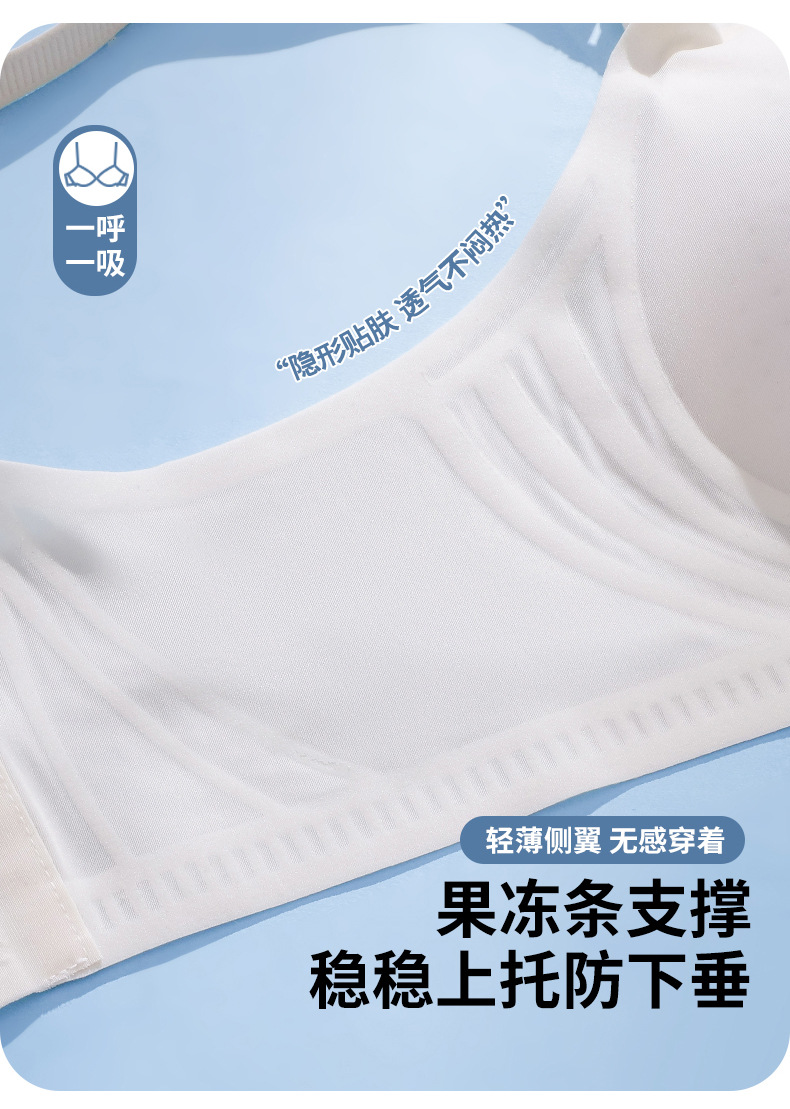여름 경량 아이스 실크 어퍼 오픈 버클 속옷 원피스 유방 커버 원활한 얼음 느낌 젤리 스트립 소프트 지원 간호 브래지어