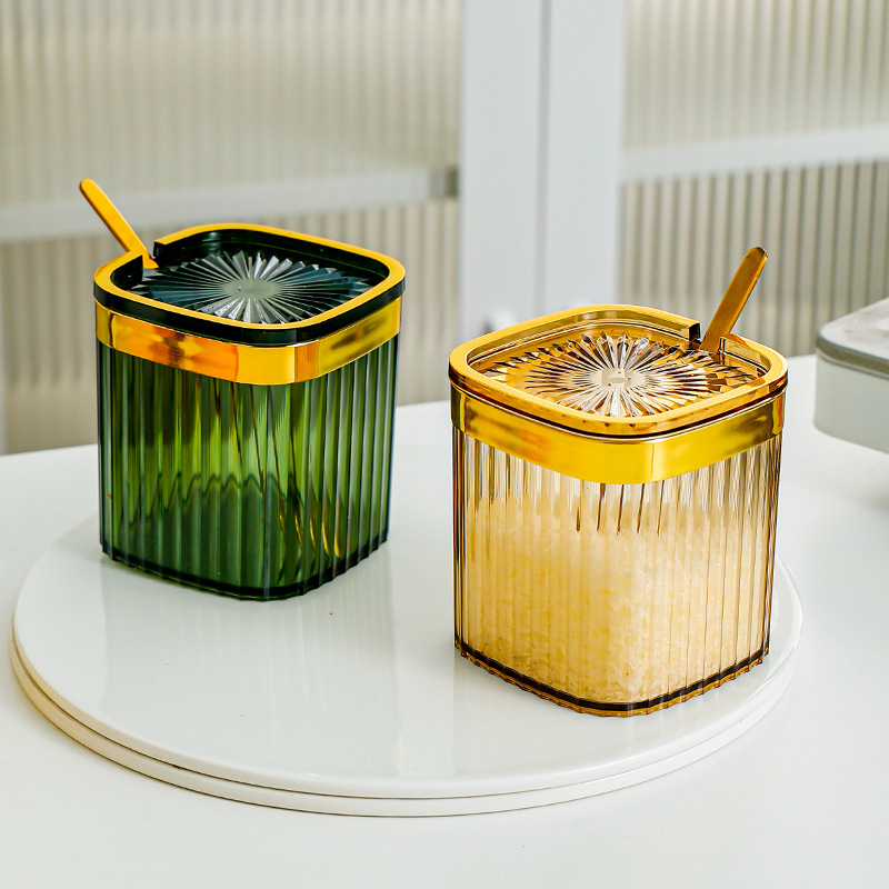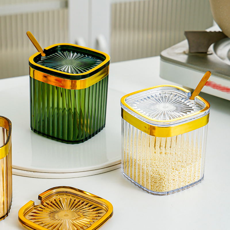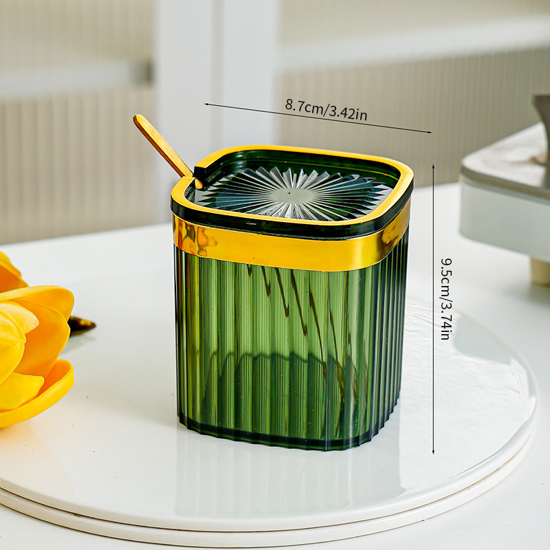 • 과일 녹색 사각형 둥근 조미료 항아리 골드 가장자리 숟가락