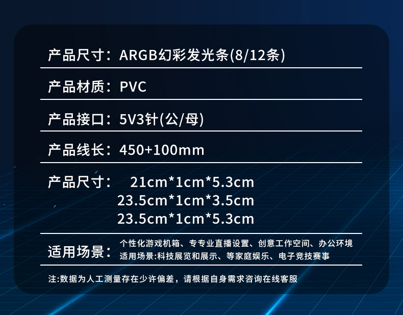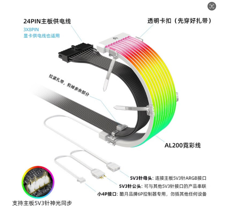 • ARGB 네온 라인 [24 핀 그래픽 카드 전원 공급 장치 장식] 짧은