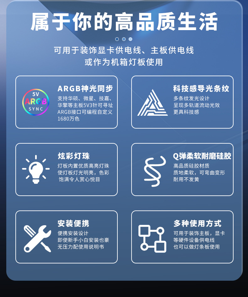 • ARGB 네온 라인 [24 핀 그래픽 카드 전원 공급 장치 장식] 긴
