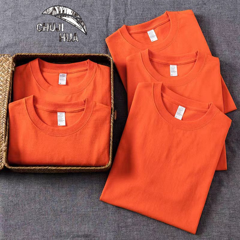 • 오렌지 레드 무거운 320g 순면 짧은 소매