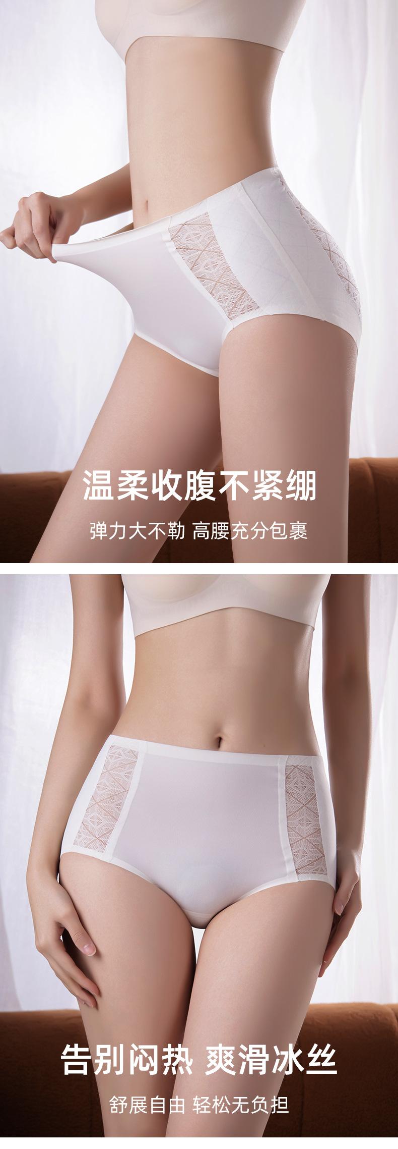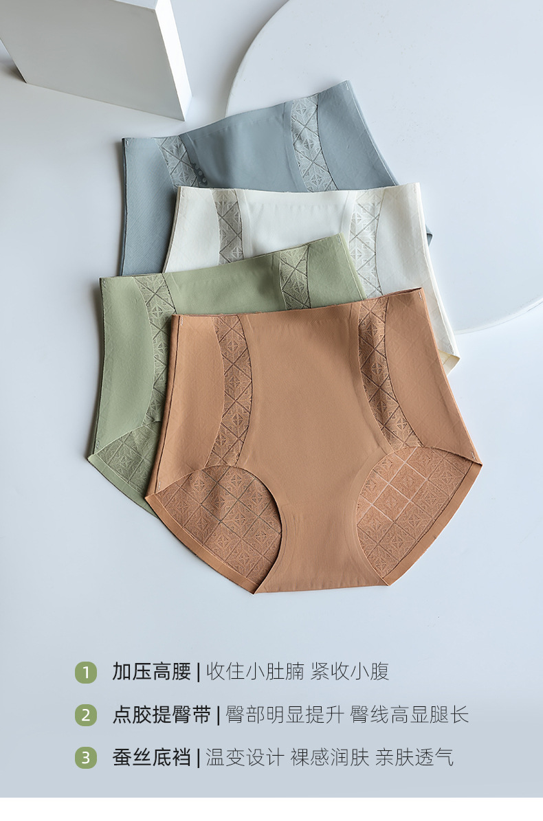 봄과 여름 새로운 원활한 숙녀 속옷 높은 허리 복부 가벼운 플라스틱 작은 허리 소녀 얼음 실크 브리프 공장스토어 가기