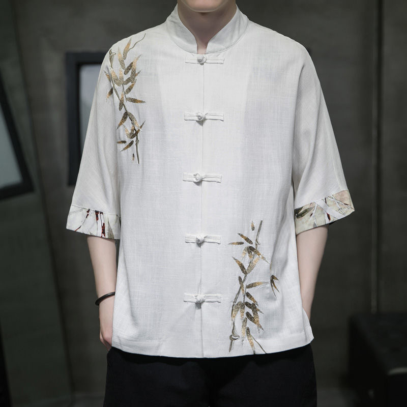 버클 중국식 면화 및 리넨 남성용 여름 느슨한 지방 셔츠 트렌디가있는 남성용 리넨 반팔 티셔츠스토어 가기